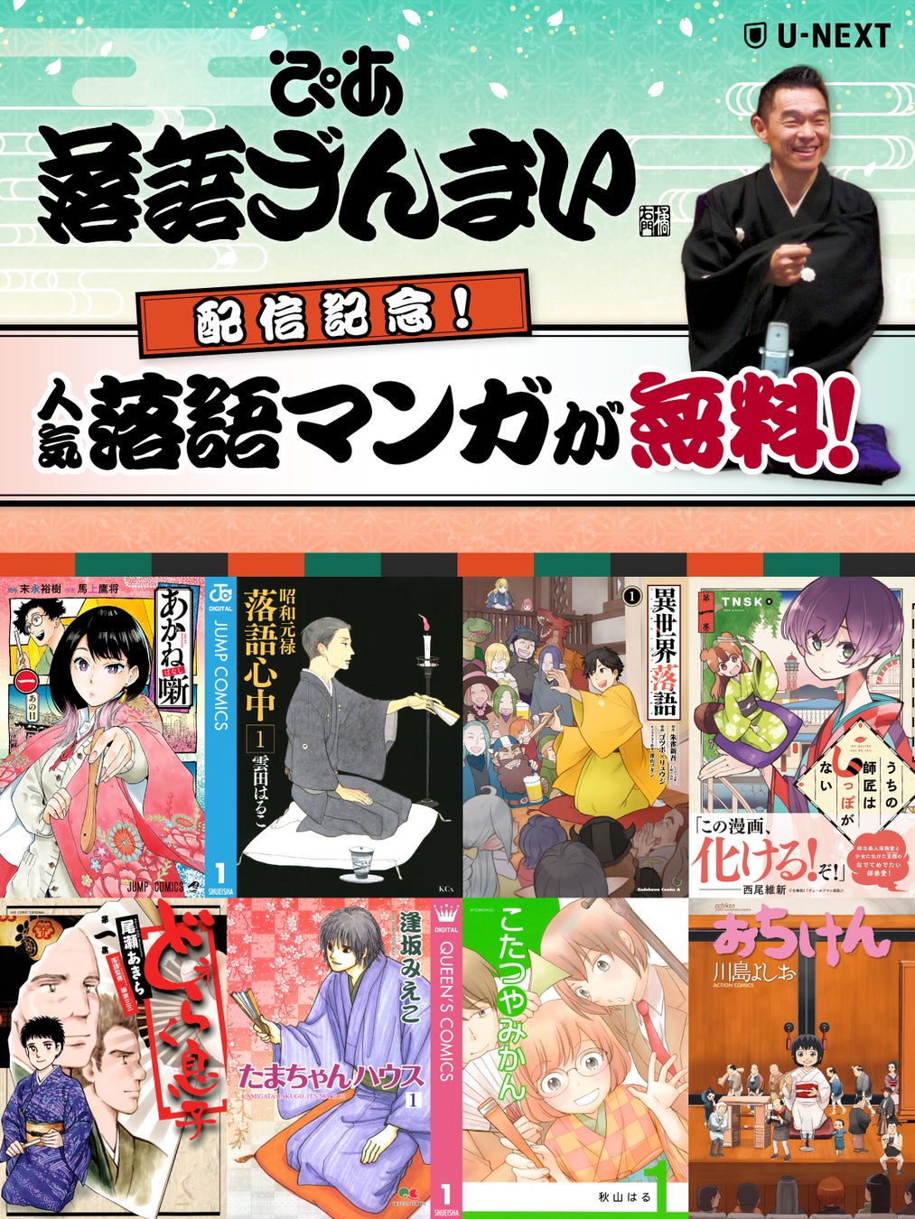USEN&U-NEXT GROUPの株式会社U-NEXT (本社:東京都品川区、代表取締役社長:堤 天心)が運営する動画配信サービス「U-NEXT」は、5月15日(木)ひる12時より、高座映像を厳選した『ぴあ落語ざんまい』を配信開始いたします。