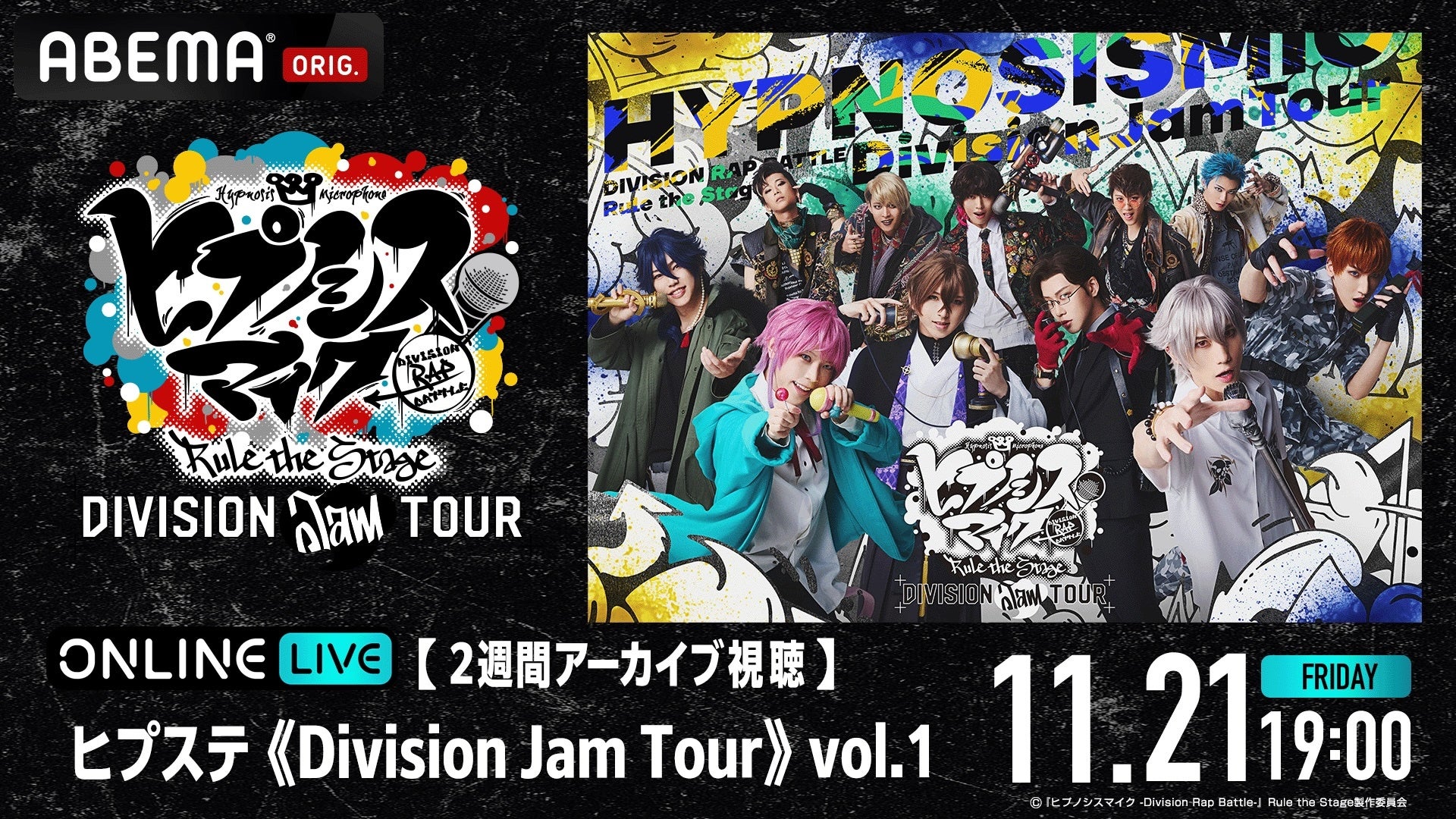 全国を巡る「ヒプステ」ライブツアー「ヒプステ《Division Jam Tour》vol.1」の11月21日(金)19時公演を「ABEMA PPV」にて独占生放送決定!