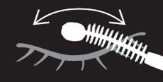 ●ブラシのアーチの山側を上にした状態で、まつげの根もとにあて、持ち上げるように毛先までつけます。