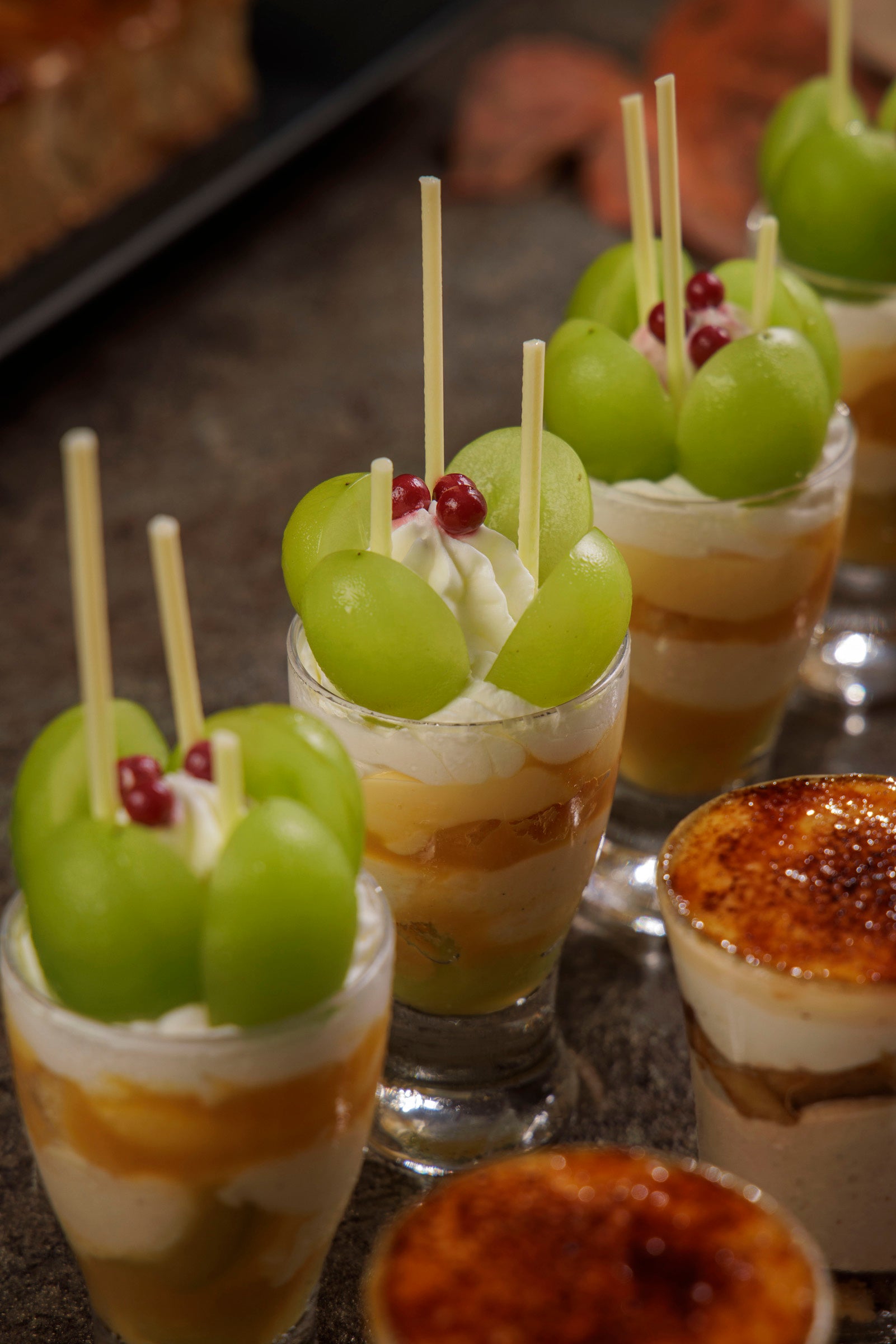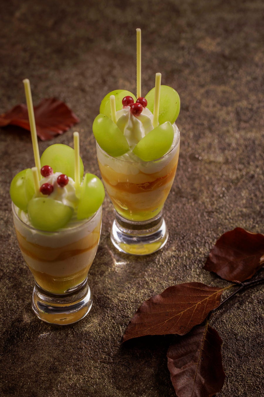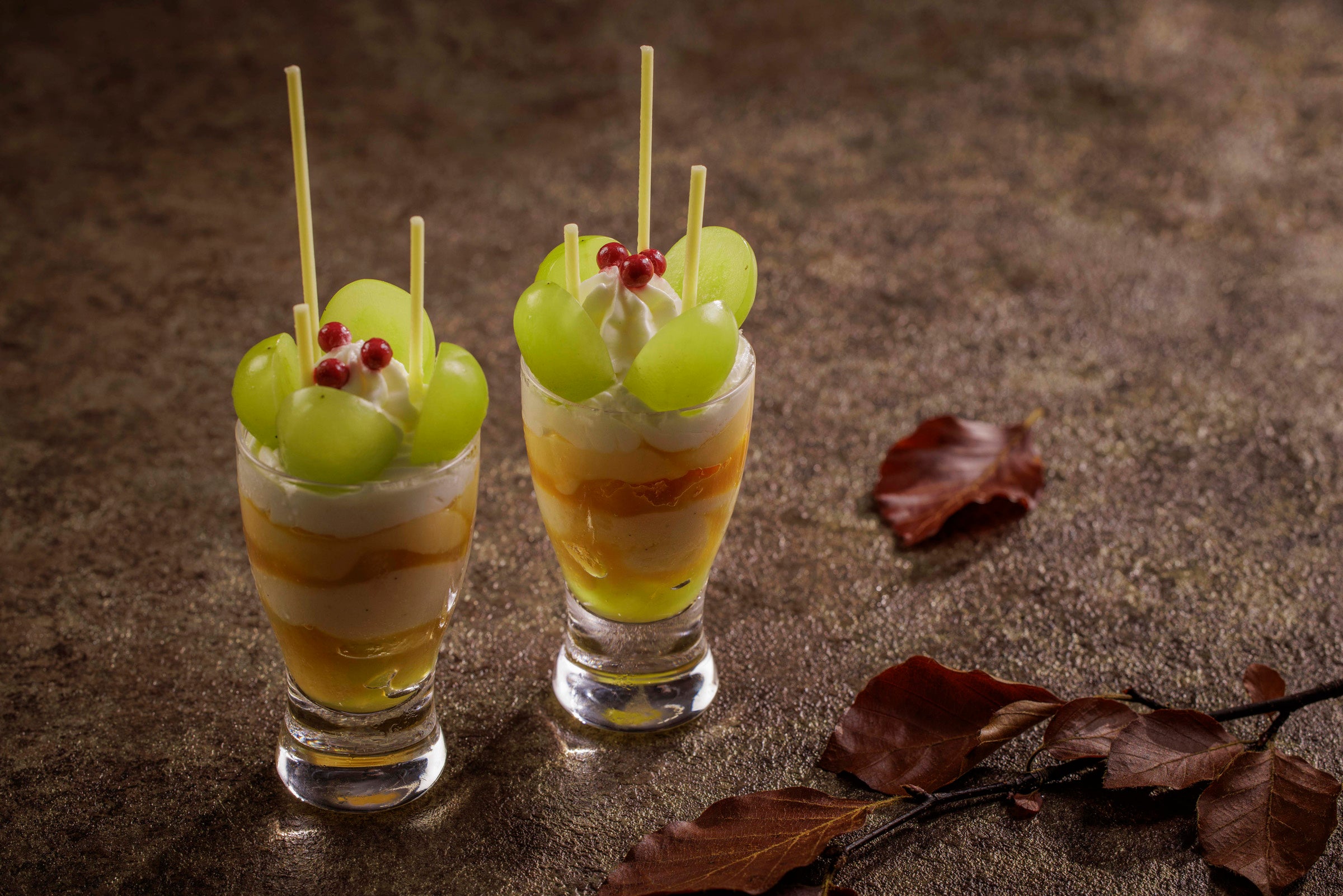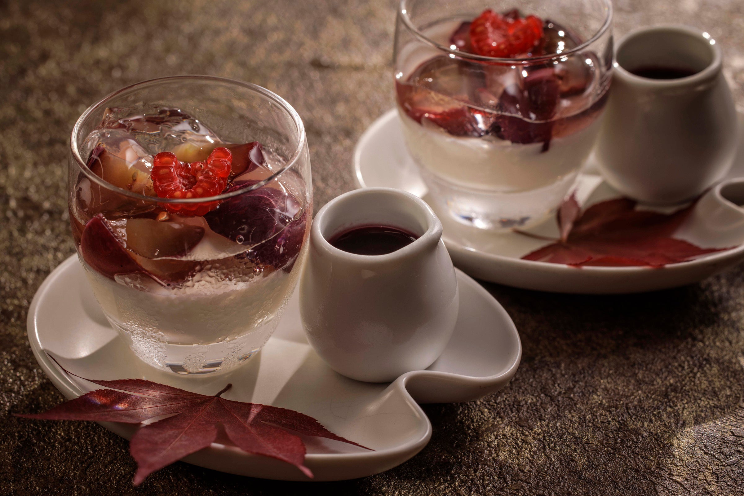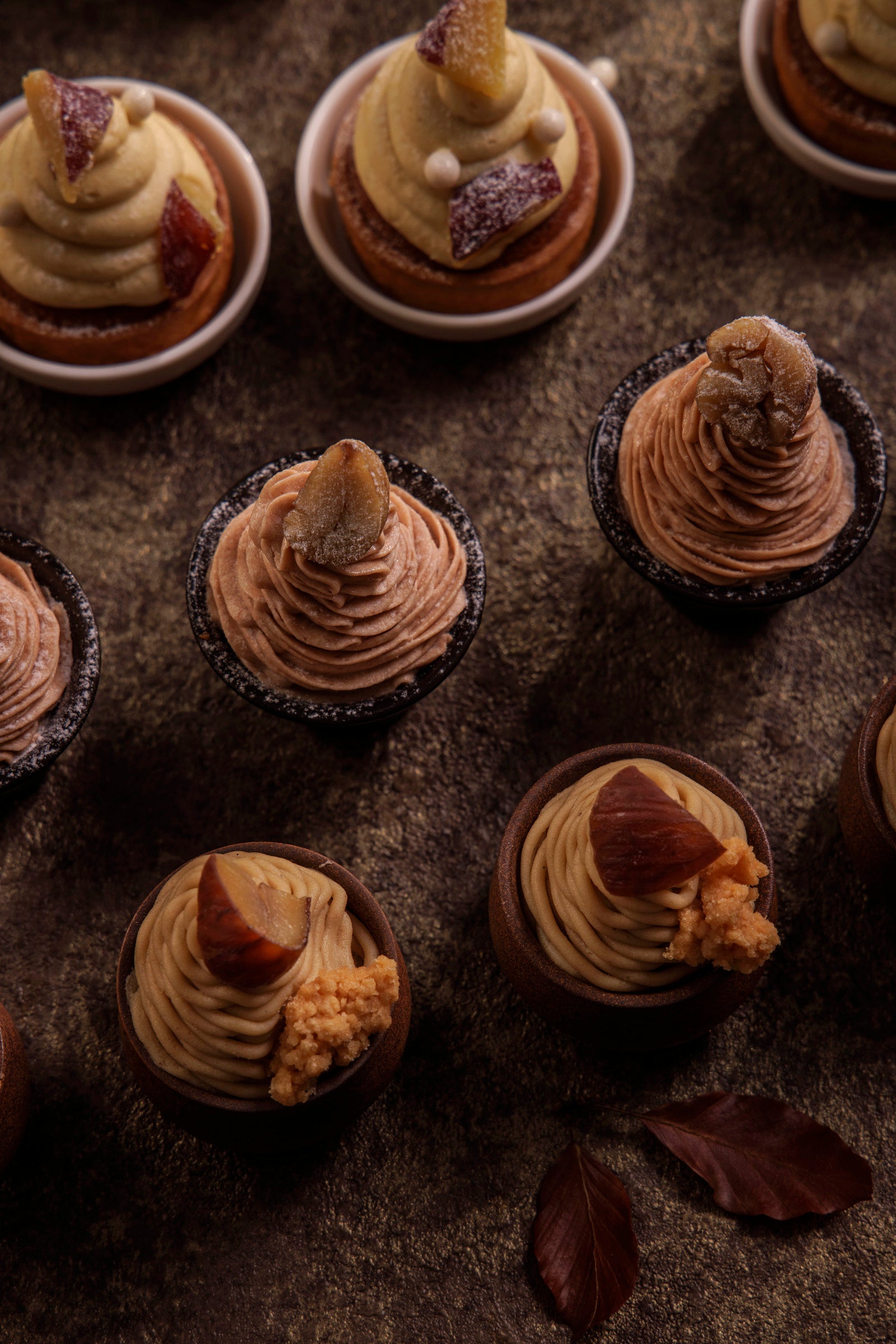 栗、ぶどう、洋なし、りんご、無花果、かぼちゃ、さつまいも、木の実──。秋を象徴する多彩な食材を、ペストリーシェフ率いる熟練のチームが繊細かつ創造的なデザートの数々へと昇華させました。 一つひとつ丁寧にこだわって作り上げた20種類以上ものデザートが、秋のひとときを贅沢に彩ります。