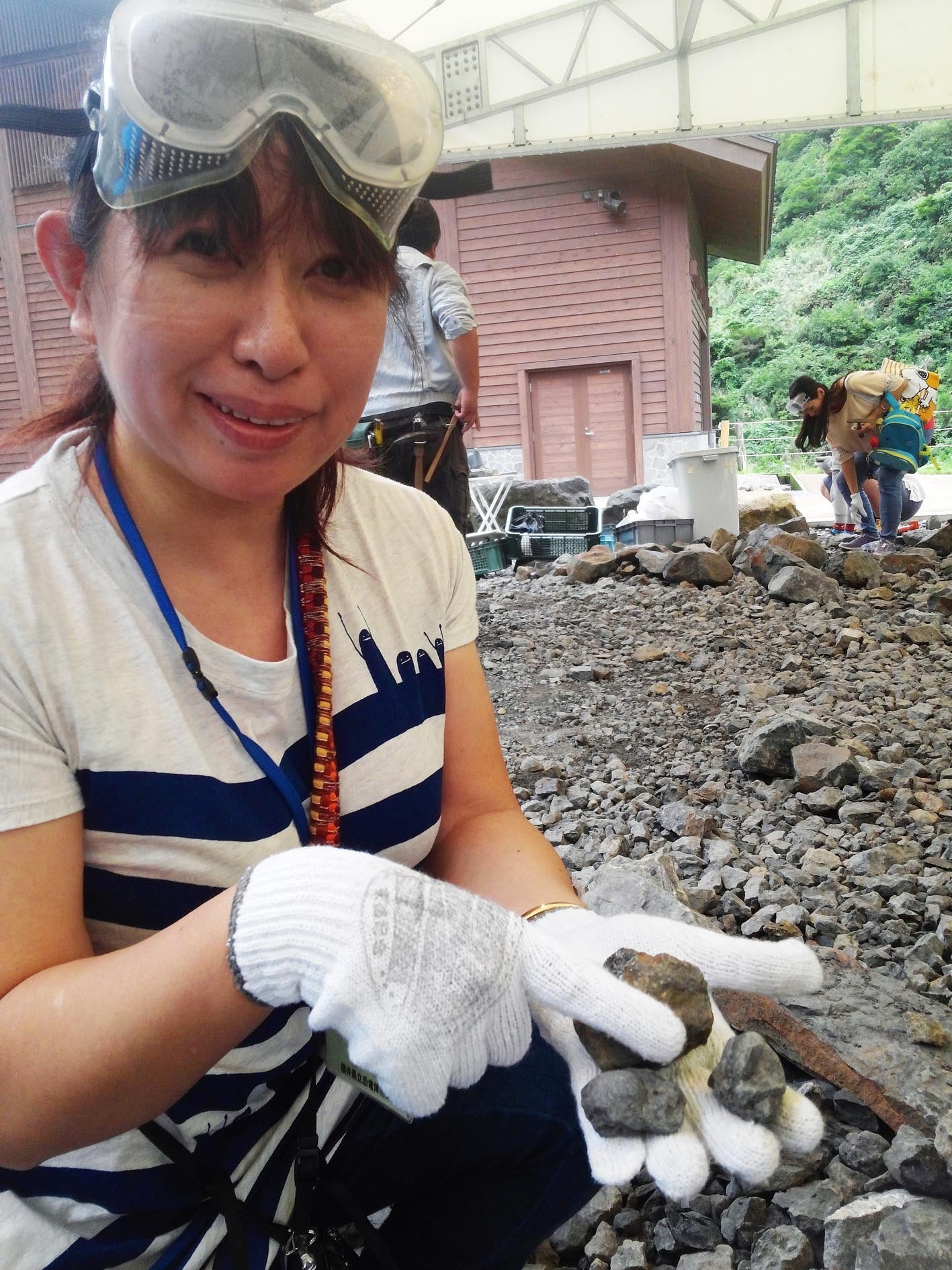 ▼福井県立恐竜博物館で化石を発掘するたしろ氏