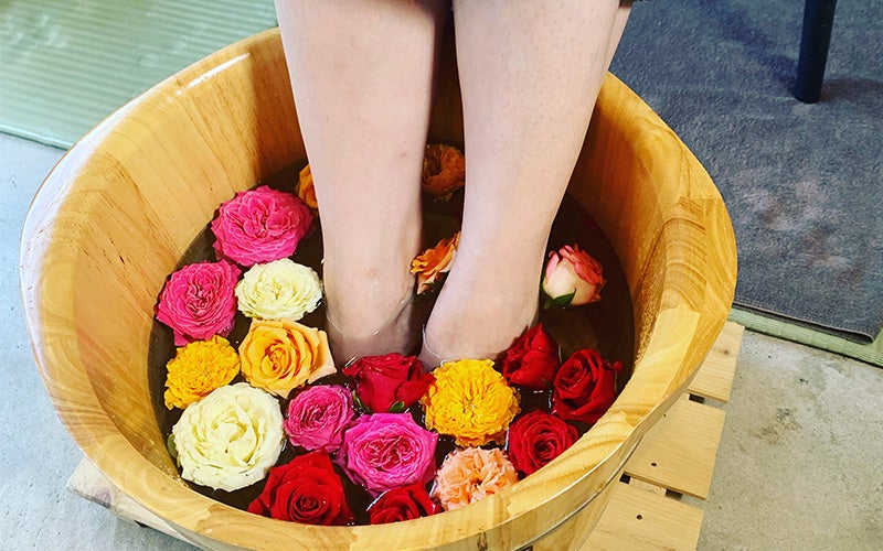 足湯付きの肩こり腰痛解消コンテンツ。温泉・入浴専門家が監修。