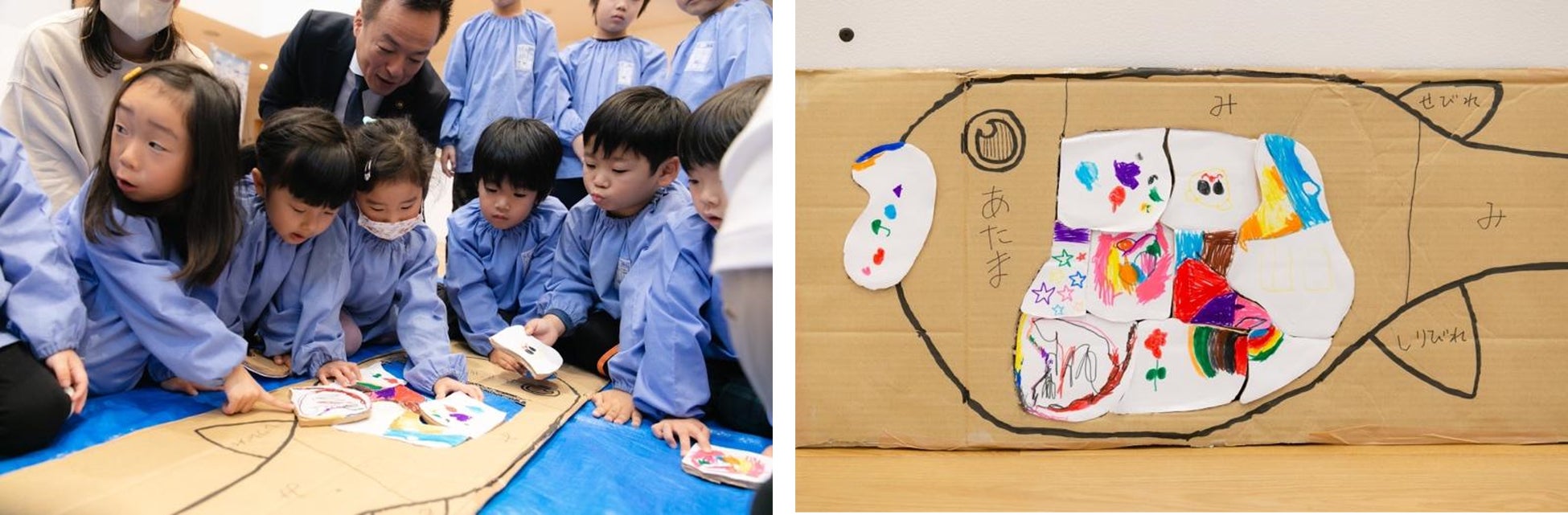 出来上がった素敵なフグのパズルは、イベントが終わってからも、子ども園で知育玩具としてお使いいただくことになりました。