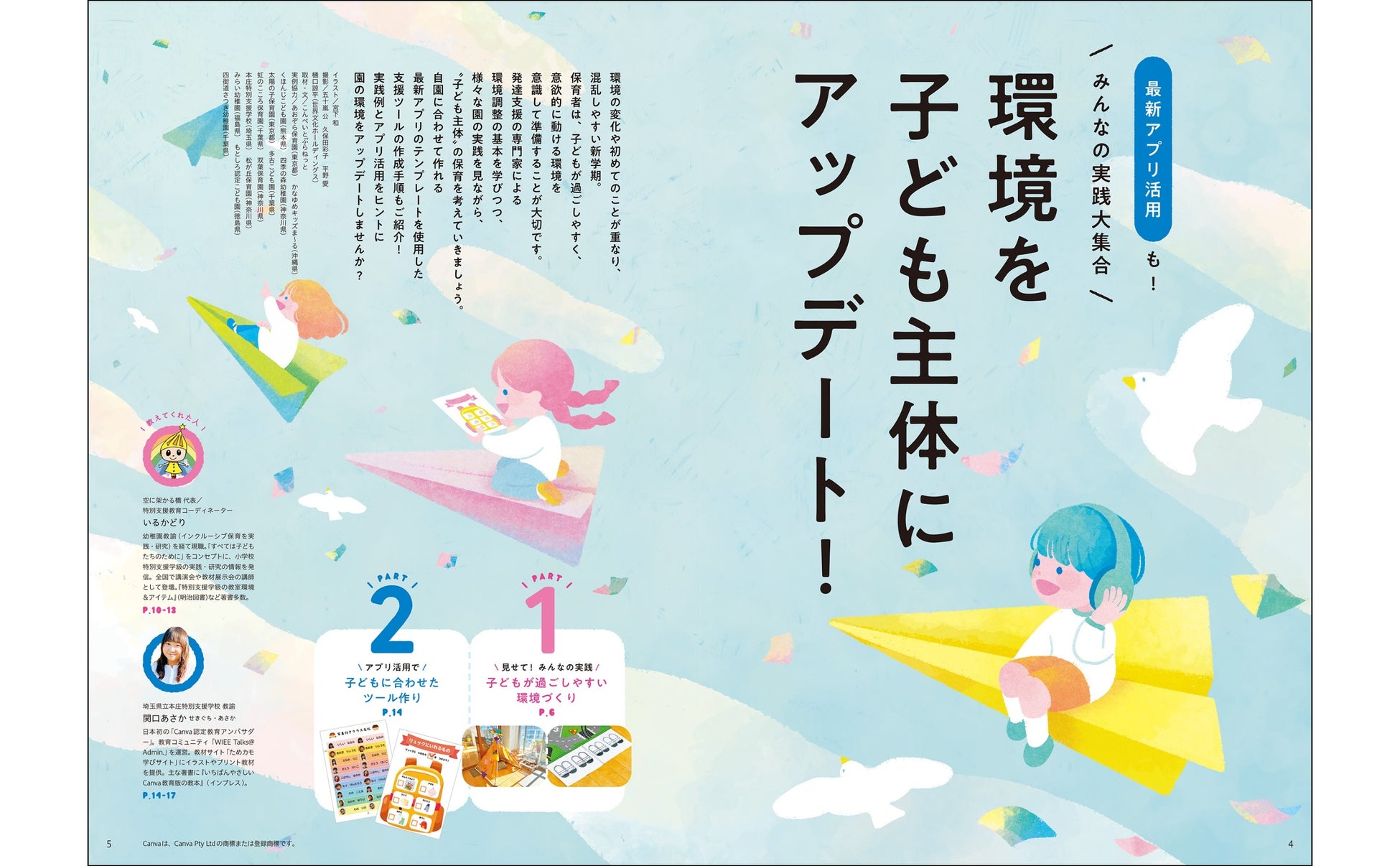 環境の変化や初めてのことが重なり、混乱しやすい新学期。今号では、園や児童発達支援、特別支援学校の環境づくりの実例を大紹介。また、日本初の「Canva認定教育アンバサダー」である関口あさか先生が、デザイン作成アプリCanvaの特別支援向けテンプレートを使用した支援ツールの作り方も紹介!