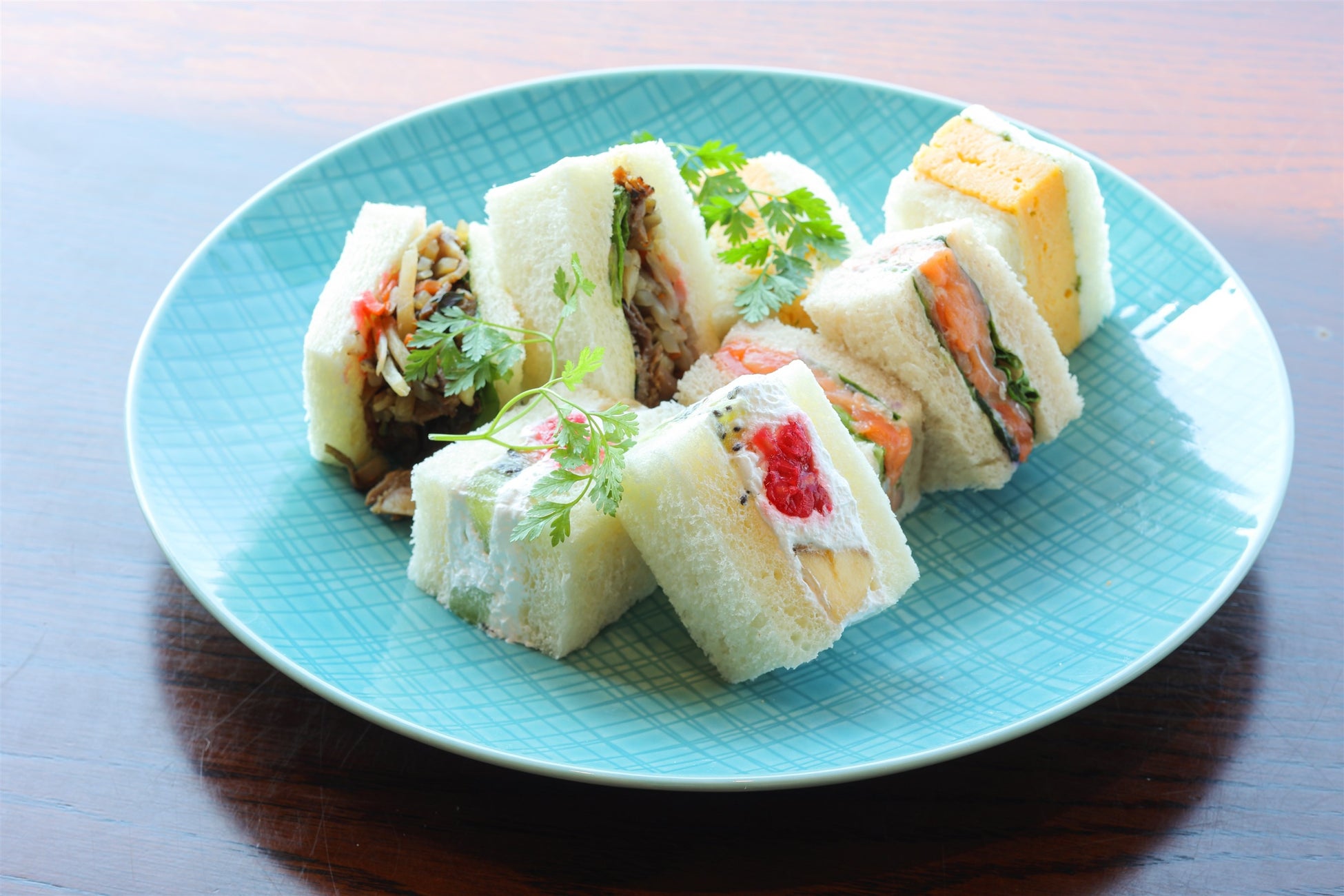下段にはホテルの自家製『オリジナルサンドウィッチ』を盛り付け、シェフのこだわりが詰め込まれたアフタヌーンティーに仕立てました。