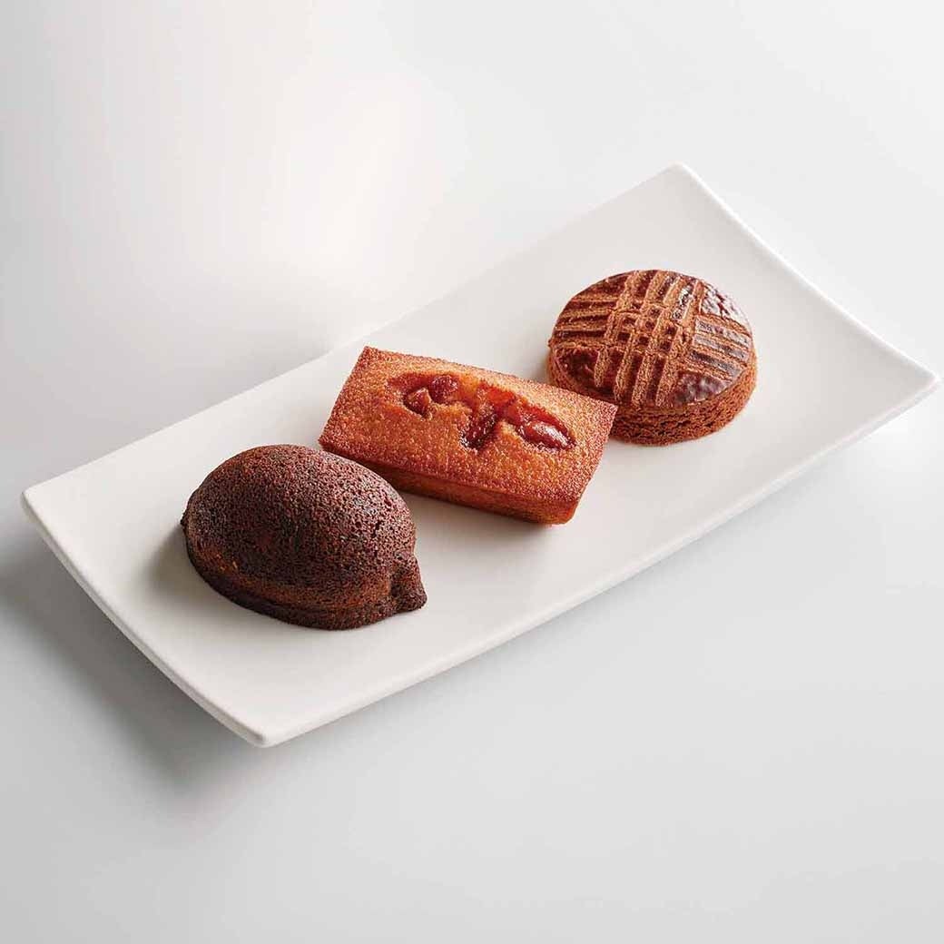 メキシコ産ホワイトカカオを使用したフィナンシェ、ガレット、ケーク、3種の焼菓子のアソート。