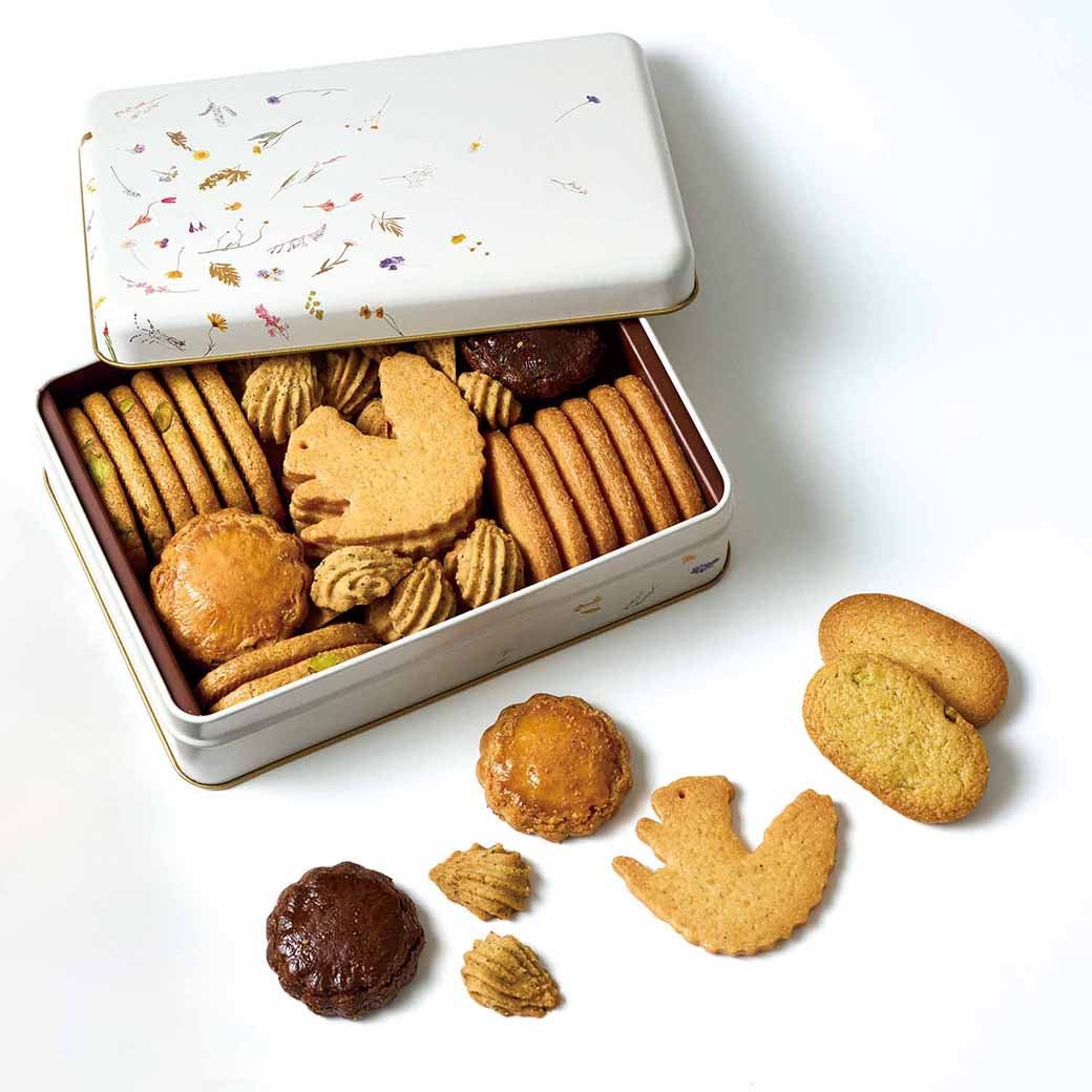 可愛らしいリスが新たに仲間入りしたサブレ缶。丁寧に焼きあげたサブレやガレットなど、6種類の詰め合わせ。