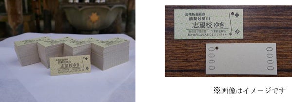 能勢電鉄と能勢妙見山が共同で硬券タイプのお守りを「合格祈願硬券・志望校ゆき」として製作し、北極星信仰の世界的聖地・能勢妙見山「開運殿」にて開運合格祈祷をして配付します。