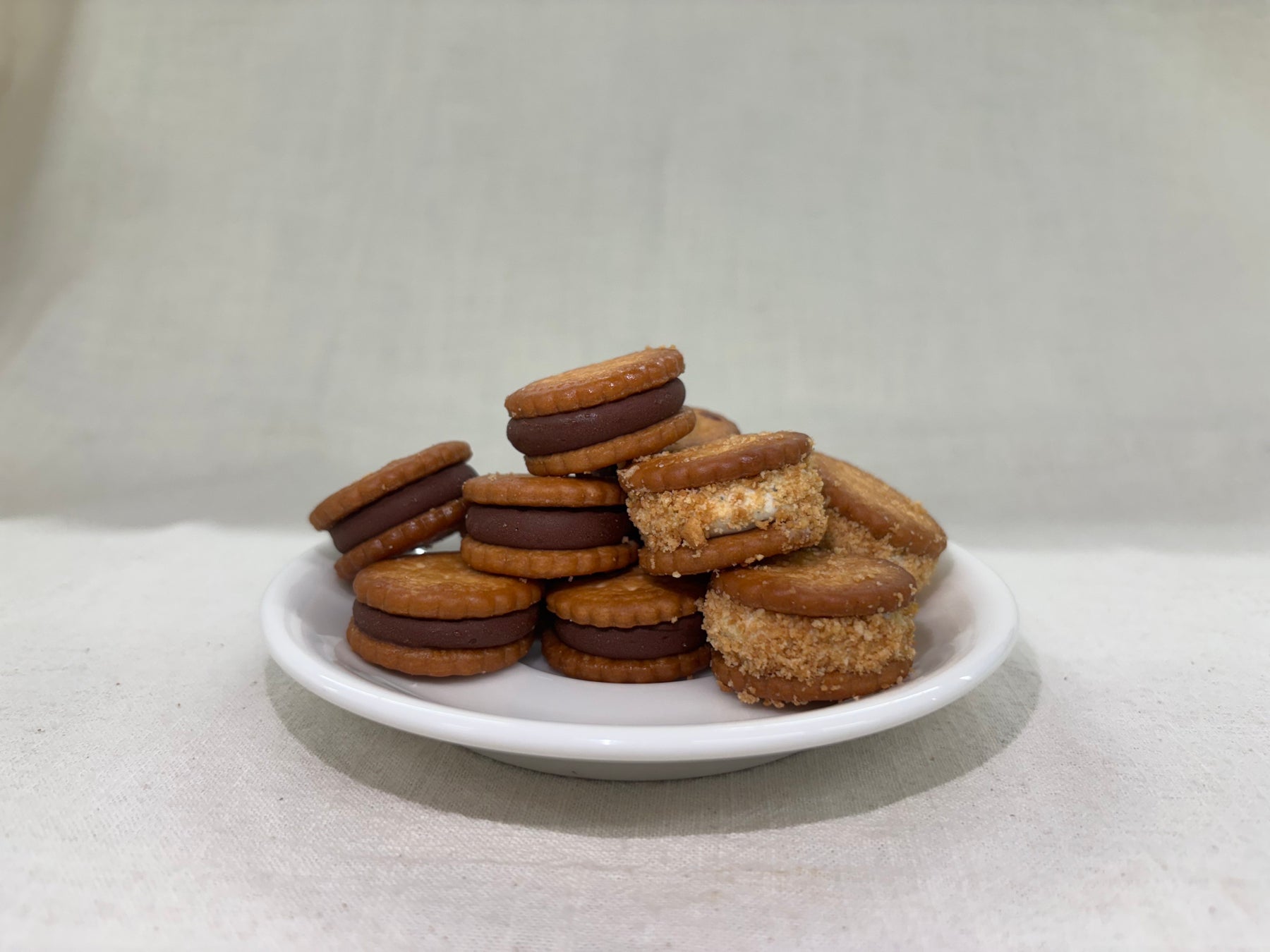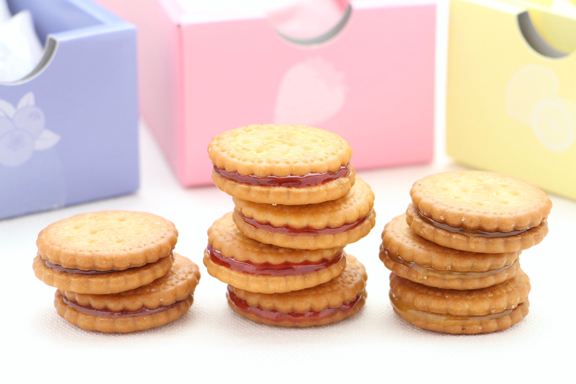 ➀国内産のいちごを使用したいちごジャムと国産ブルーベリーを使用したブルーベリージャムと瀬戸内産レモンを使用したレモンジャムをそれぞれミレービスケットでサンドしました。どの味もミレービスケットにマッチするように作られたこだわりのジャムサンド3種類セットです。