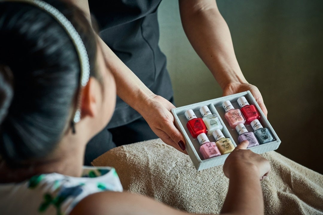 洗練されたネイルに憧れを持つお子様も大人のように楽しんでいただけるよう、キッズ向けネイルカラー体験として、カット・ファイリング・ポリッシュの施術をご提供いたします。リラックスした空間で、セラピストによる施術を受けていただいた後は、「プチ・マニュキュリスト」のネイルポリッシュも1本プレゼント。夏の始まりとともにお届けする新たな通常プログラムとして、爪先から心までお子様をカラフルに彩ります。