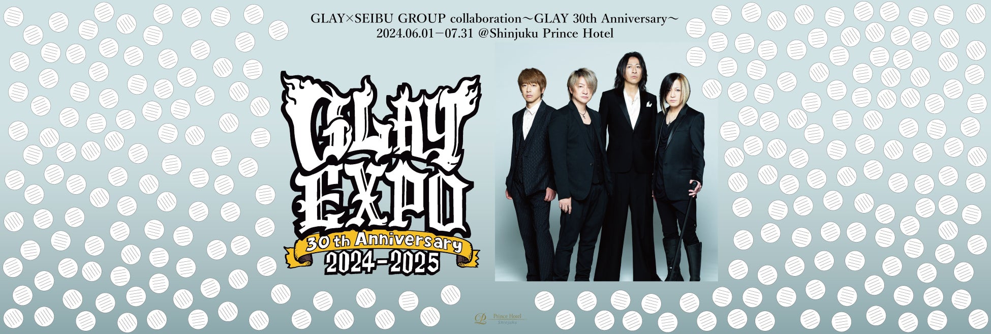 2024年6月8日(土)、6月9日(日)にベルーナドームにて行われる「GLAY 30th Anniversary GLAY EXPO 2024-2025」の開催に合わせ、新宿プリンスホテルと川越プリンスホテルでは、“GLAY×SEIBU GROUP collaboration~GLAY 30th Anniversary~”をテーマにさまざまなオリジナルコンテンツを展開いたします。