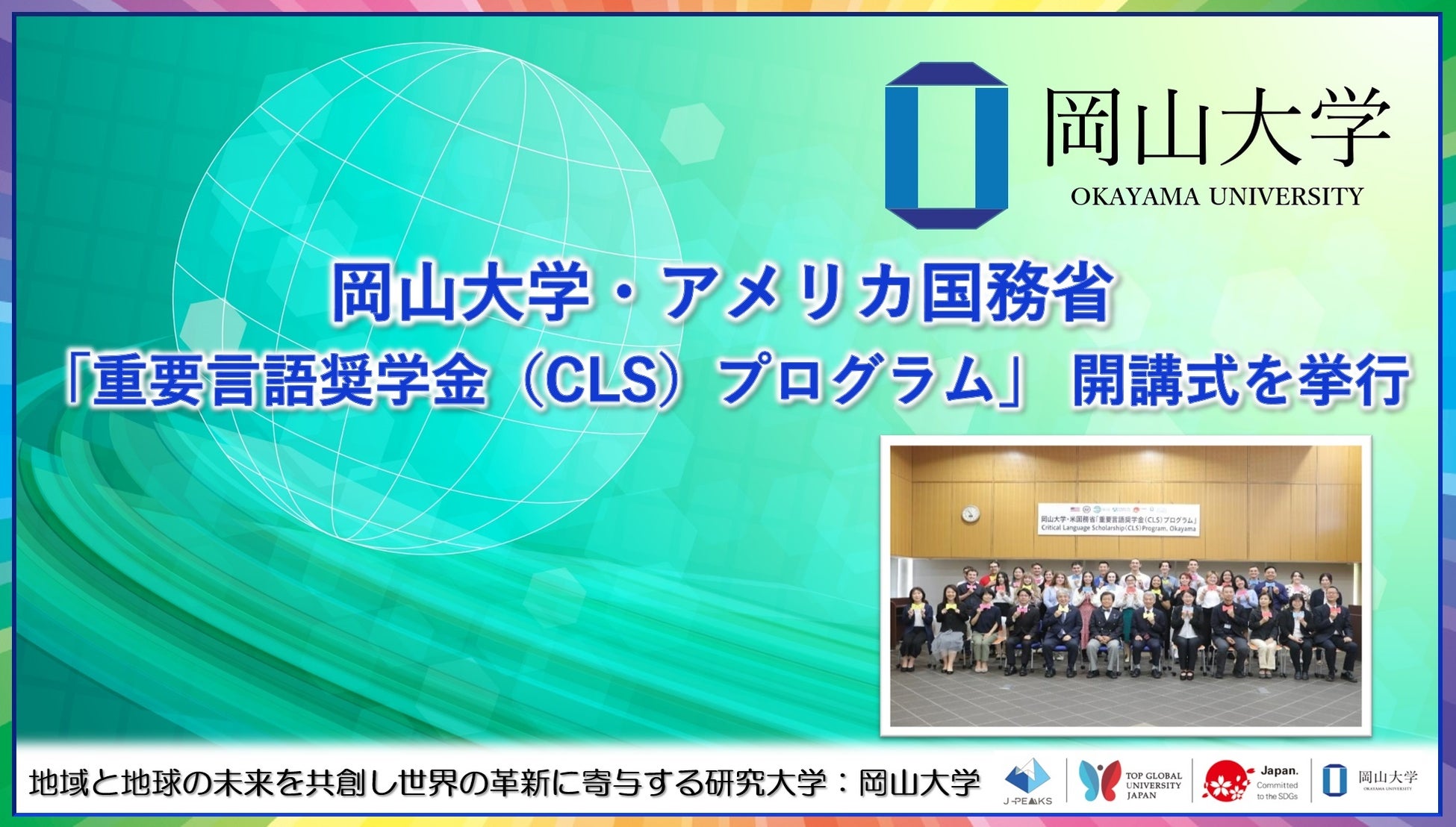 国立大学法人岡山大学(本部:岡山市北区、学長:那須保友)は、アメリカ国務省により選抜された全米トップクラスの大学生・大学院生が他国の言語と文化を集中的に学ぶ「米国務省重要言語奨学金(CLS)プログラム」の日本唯一の派遣先として2019年度から採択されています。今年は、6月14日から8月8日までの約8週間、全米から選抜された25人の大学生・大学院生を受け入れます。