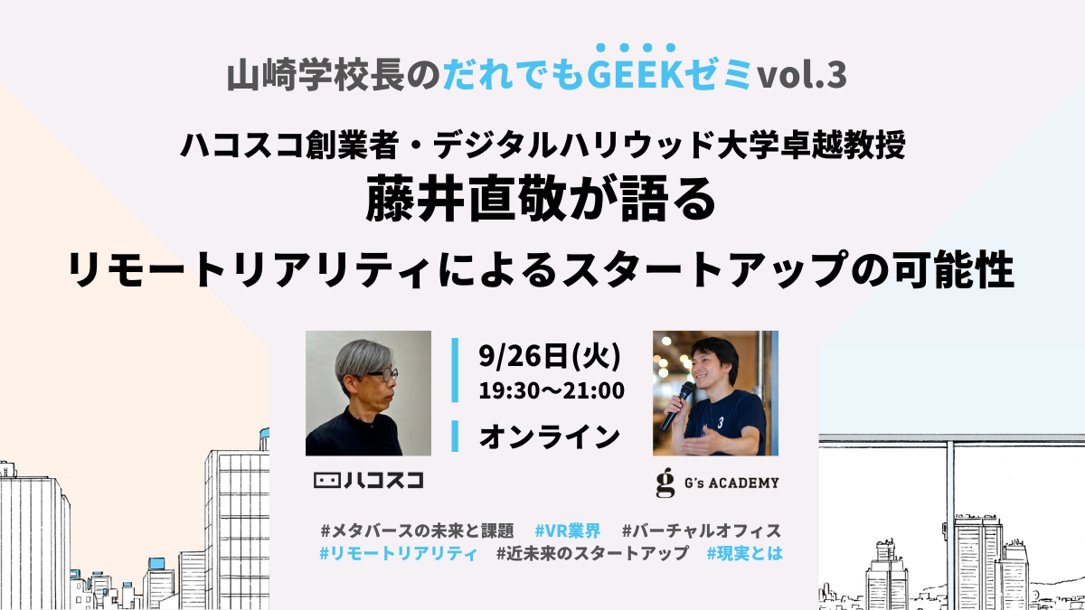 【イベント】ハコスコ創業者・デジタルハリウッド大学卓越教授 藤井直敬が語る リモートリアリティによるスタートアップの可能性|G's ACADEMY(ジーズアカデミー)