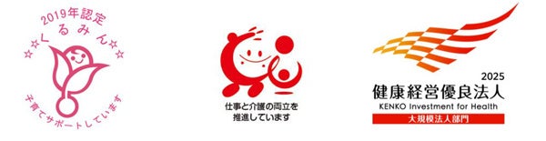 2009年、2011年、2014年、2019年に厚生労働省の次世代マーク「くるみん」の認定を取得。経済産業省と日本健康会議による「健康経営優良法人」では2018年、2022年、2023年、2024年、2025年に大規模法人部門で選定を受けています。