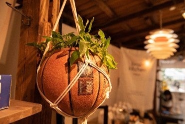 廃棄ボールを植物プランターにアップサイクルした「PlanBall / プランボール」、廃棄シューズの靴紐をマクラメ編みでアップサイクルした「Shoelace Planthanger / シューレースプラントハンガー」、そして廃棄シューズのパーツと革からできている「Shoe Cardcase / シューカードケース」を展示販売します。