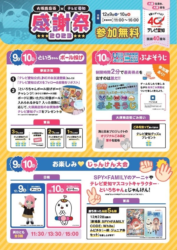 大須商店街×テレビ愛知 感謝祭2023でぷよそうじを開催!