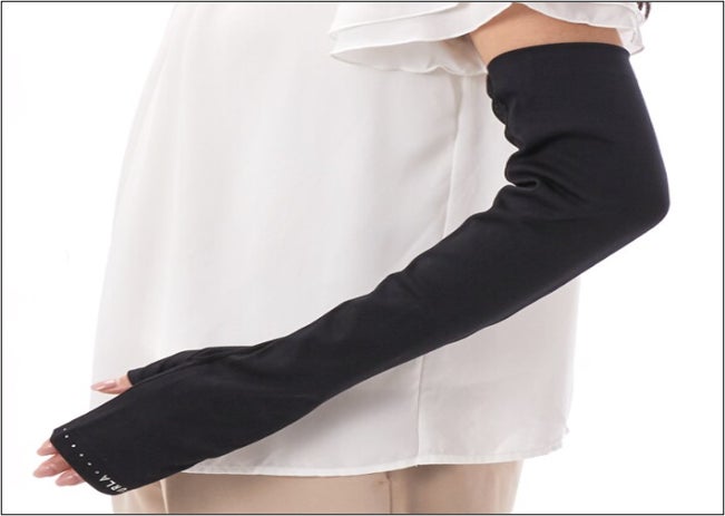 長さ50cmのUV手袋があれば、腕焼け対策もバッチリ!接触冷感生地を使用、さらに手のひら側はメッシュなので通気性も抜群です。
