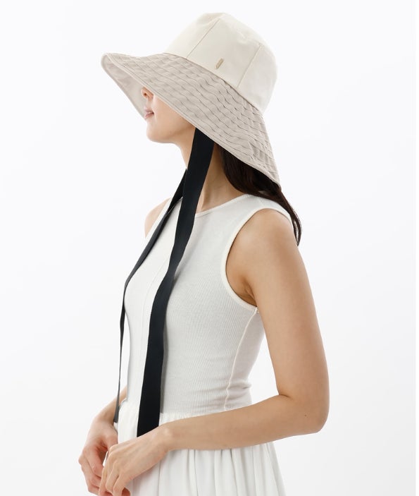 つばの中に東レ サマーシールドが入っているので、日差し対策と暑さ対策を両立できます。使用しないときは折りたたみもOK!