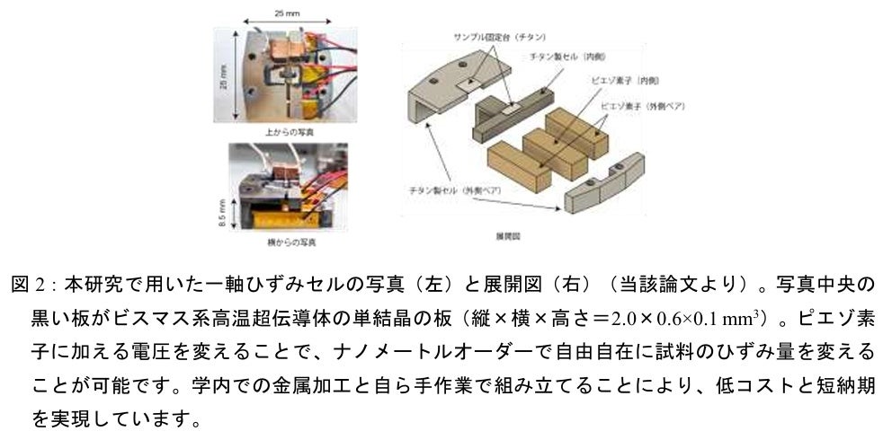 近年、正方形や六角形の平面構造を持つ超伝導物質を精密にひずませ新しい性質を引き出す研究が注目を集めています。銅酸化物は正方形の代表的物質です。我々は5年前に装置開発からこの分野に参入しました。ゼロからスタートして幾重にも試行錯誤を重ねた末、2年前についに独自装置を完成させました。その後は装置をフル活用して(ただひたすら実験して)今回の成果を得ることができました。