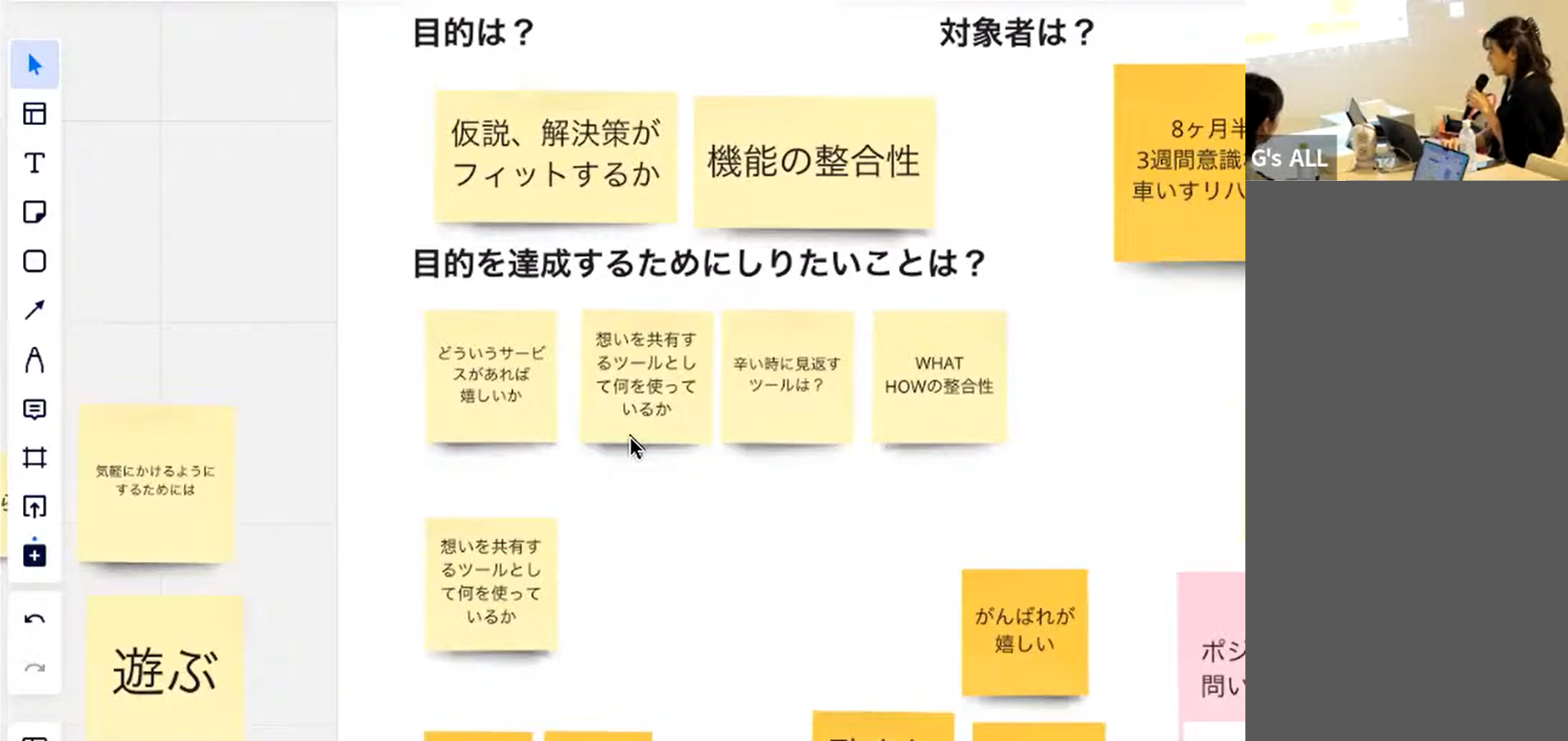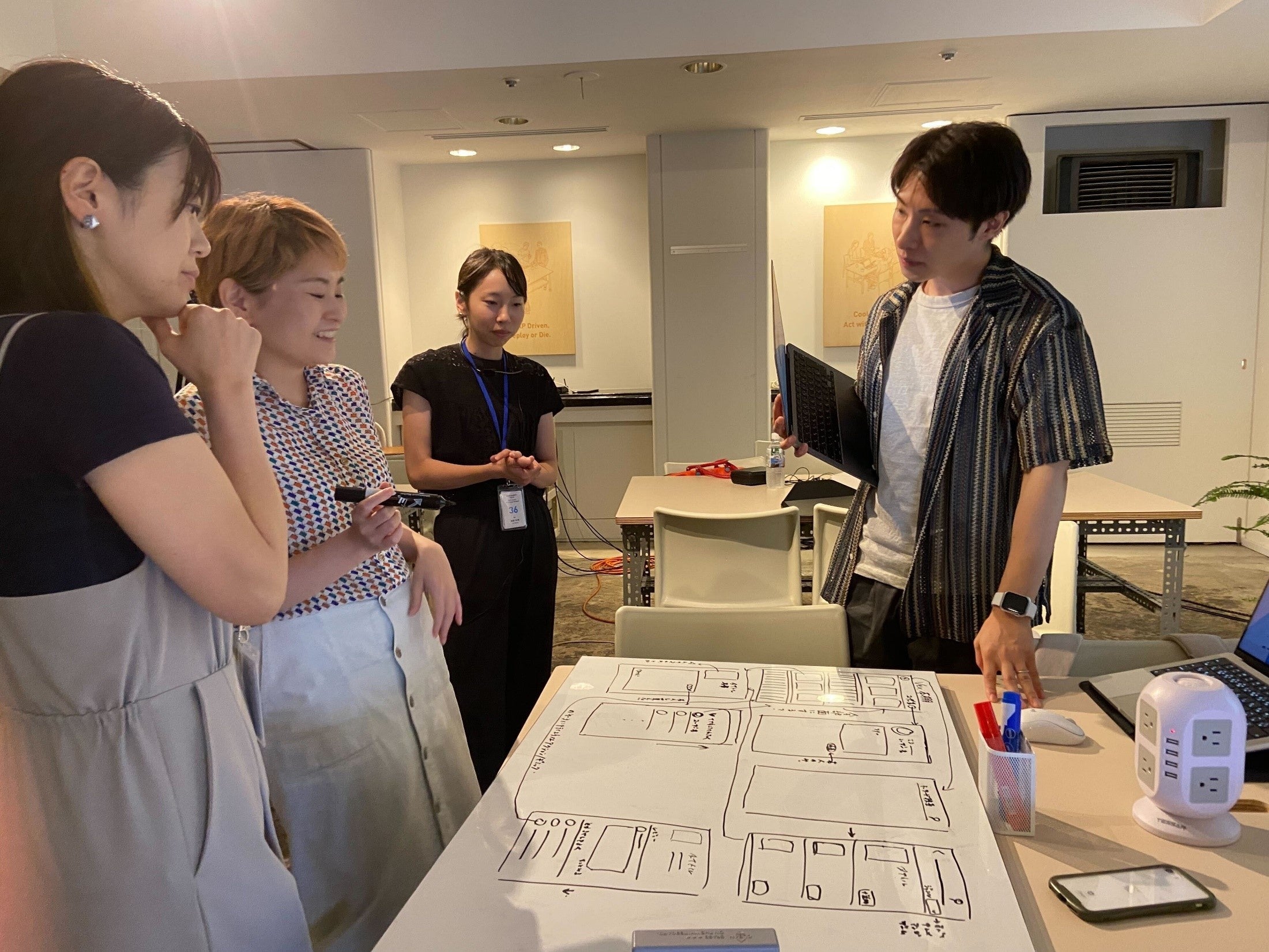 さらに3コマ目では、グループワークをメインに実施。検証を実践するために、Miro上で簡単なプロトタイプをつくり、グループ内で議論を行うなど、創りたいプロダクトが、その体験を通して目的を達成できるものになっているかを明確にイメージできるようになる講義となりました。