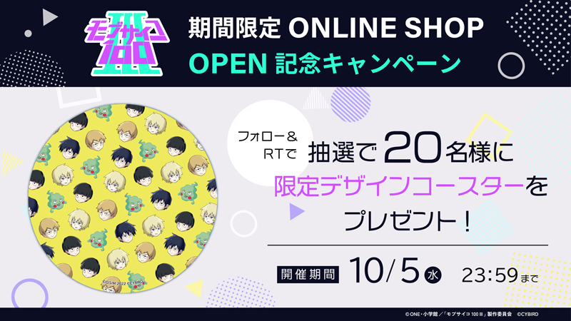 TVアニメ『モブサイコ100 Ⅲ』放送記念期間限定ONLINE SHOP開催決定!~オリジナルコースタープレゼントキャンペーン開始!~