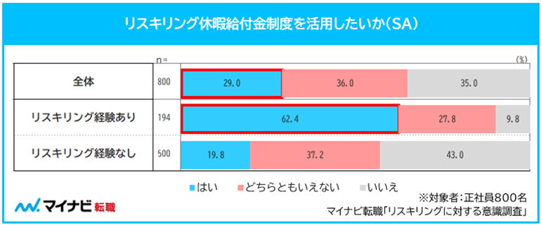 一方で、調査結果からは「休暇を取ってリスキリングをすること」に対し、会社から好意的に受け止められないのではという不安を抱く様子もうかがえました。