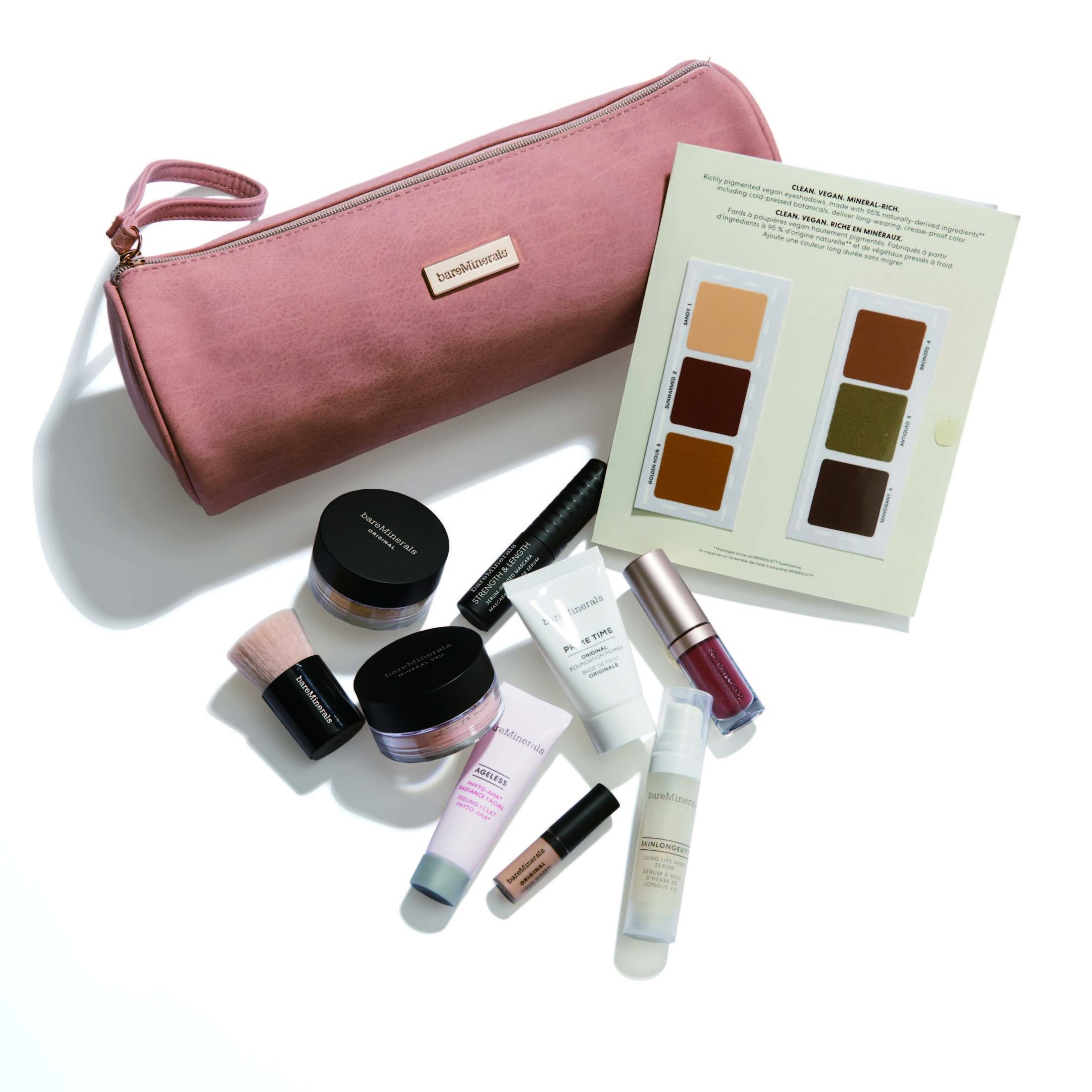 ファンデーションからスキンケアまで、<ベアミネラル>で人気のアイテム10種類のトライアルサイズがセットになった贅沢なキット。