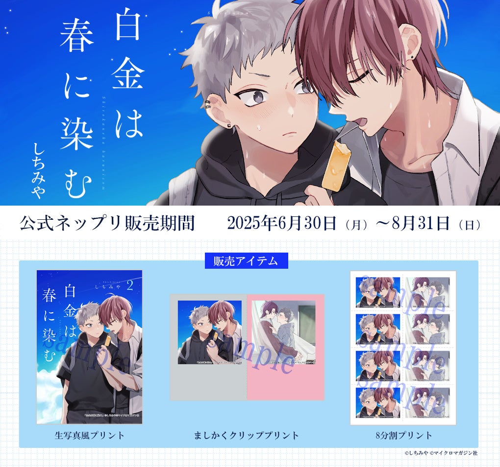 拗らせ執着モテ男子×一途純情ぼっち男子『白金は春に染む 2』6月30日より各電子書店で配信開始!期間限定で「公式ネップリ」でのプリントサービスもスタート!