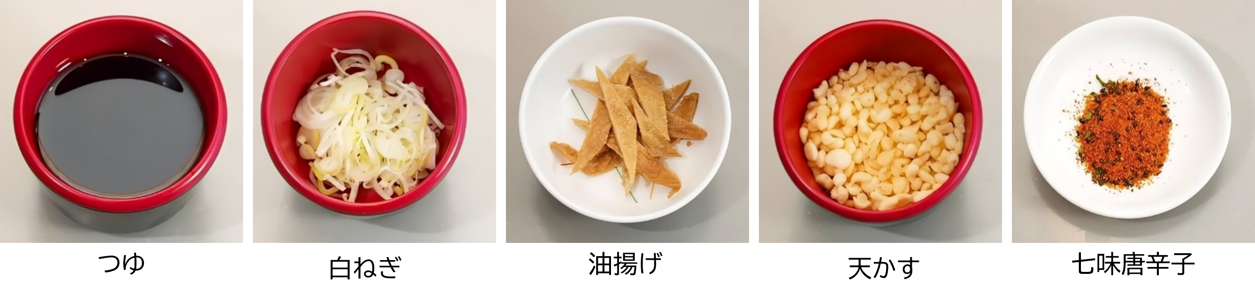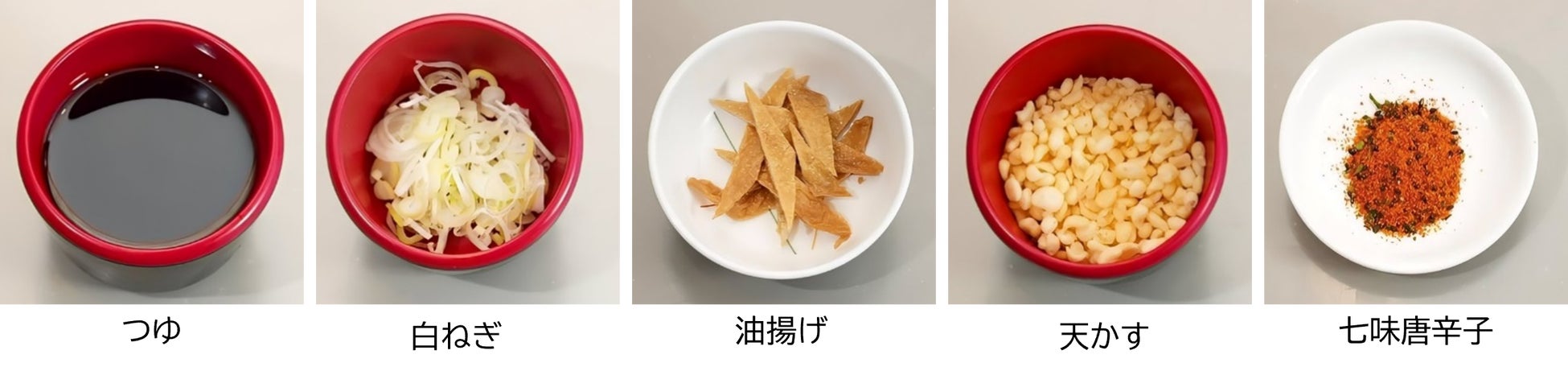 たぬきそばだけでもお楽しみいただけますが、「ミニクーリッシュ バニラ」と「七味唐辛子」をトッピングすると、名代富士そばならではの甘辛いつゆにコクが出て、絶妙な味わいを楽しめます。