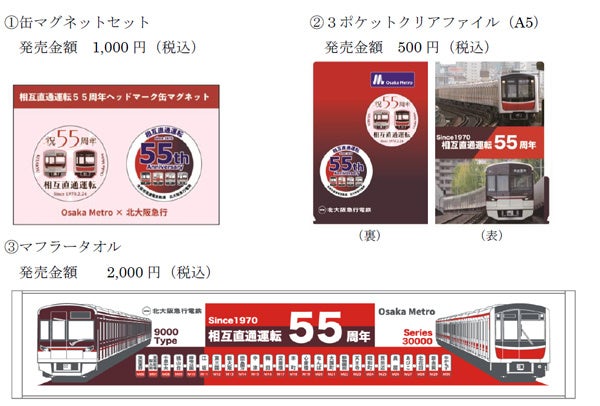 大阪市高速電気軌道株式会社(本社:大阪市西区、社長:河井英明、以下「Osaka Metro」)と北大阪急行電鉄株式会社(本社:大阪府豊中市、社長:奥野雅弘、以下「北大阪急行」)は、2025年2月24日(祝・月)に相互直通運転の開始から55周年を迎えることを記念し、ヘッドマークの掲出やコラボグッズの発売など記念事業を実施します。