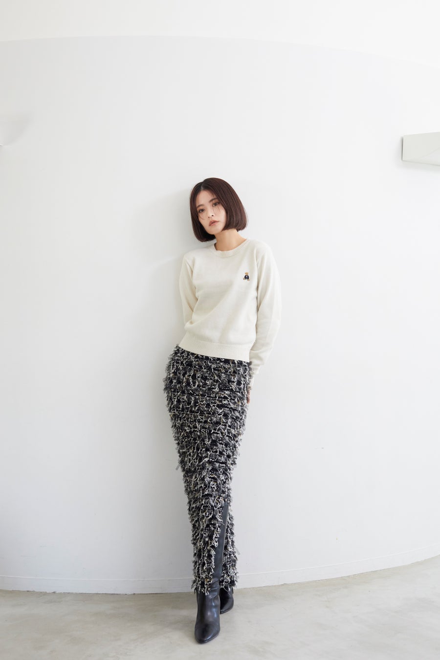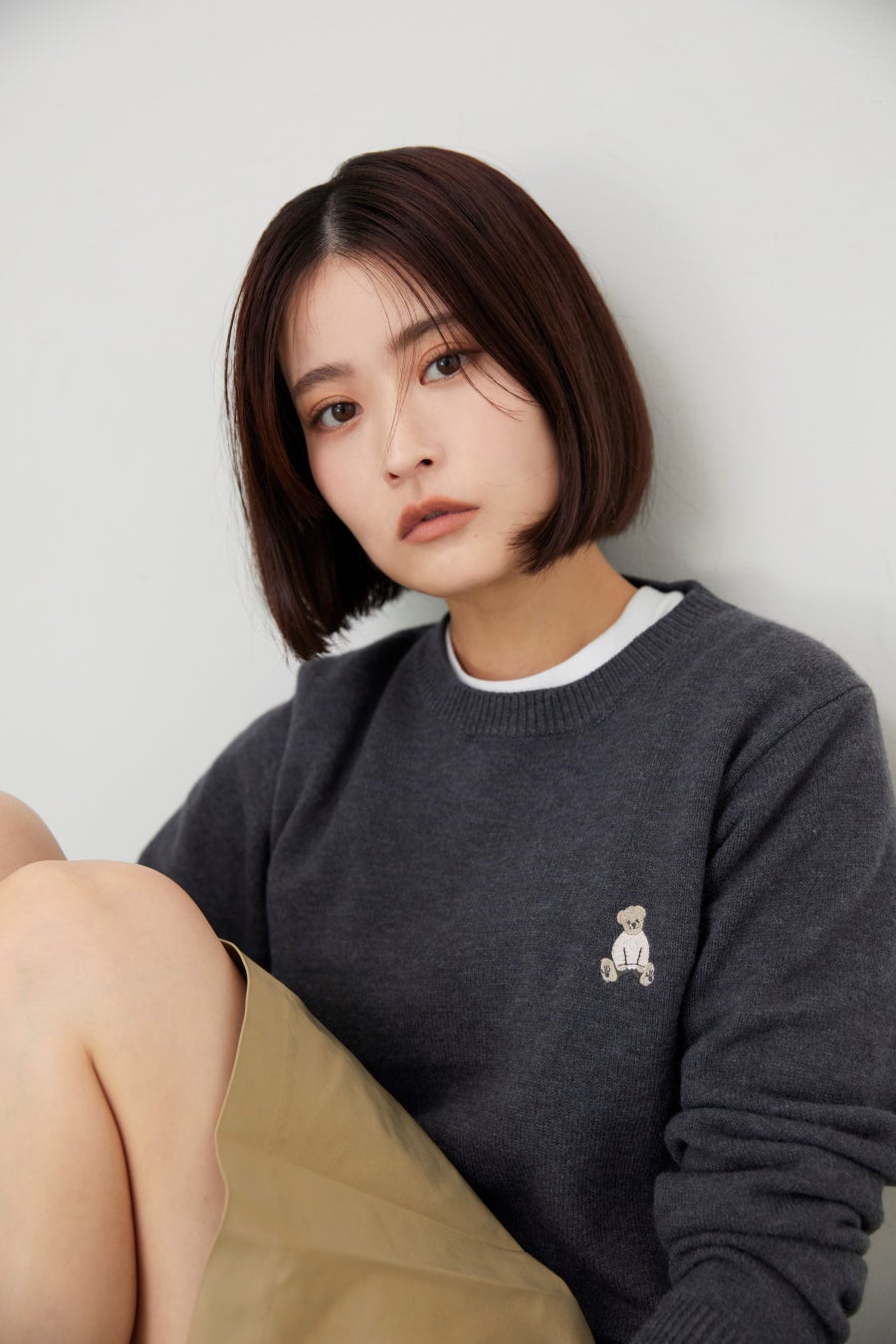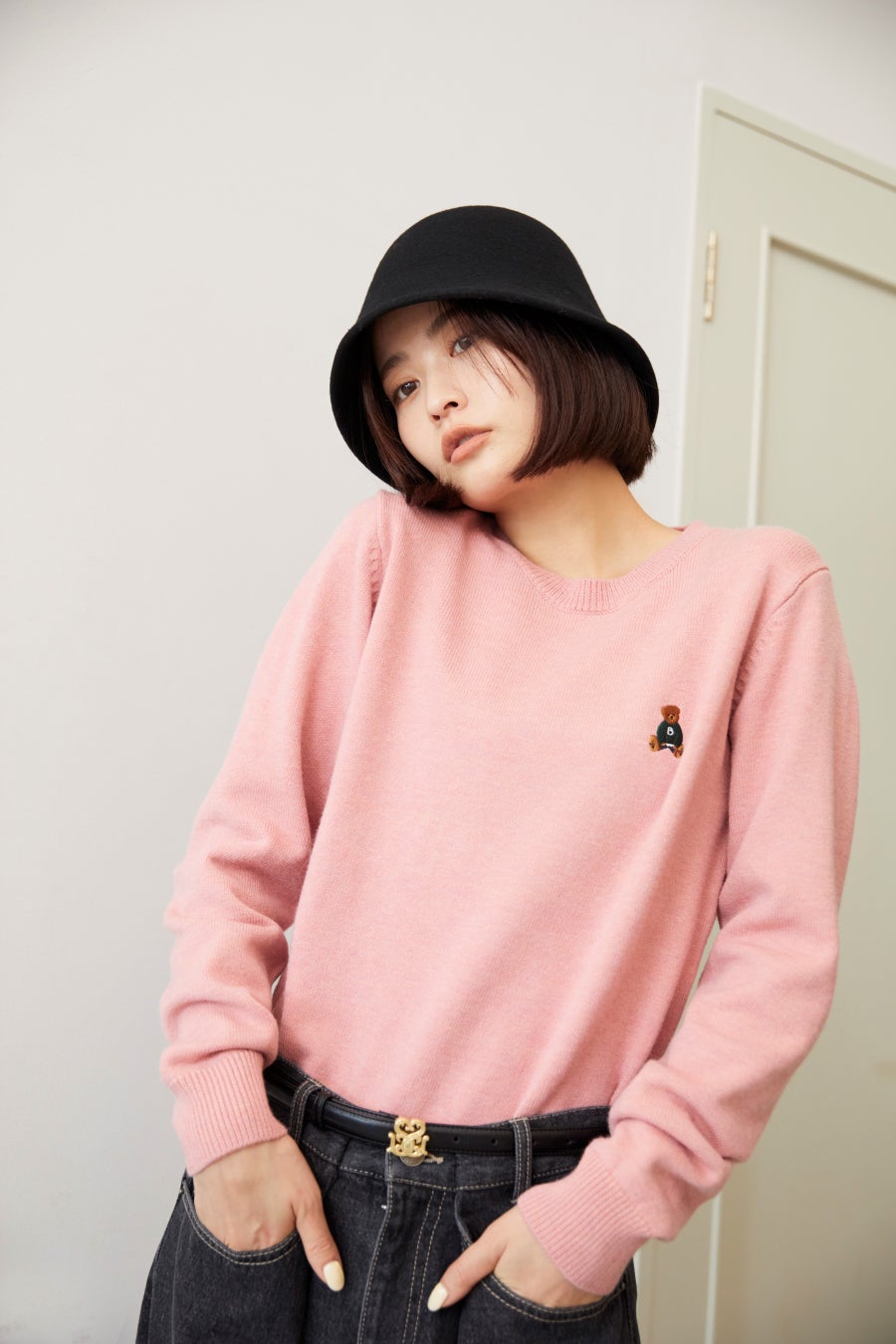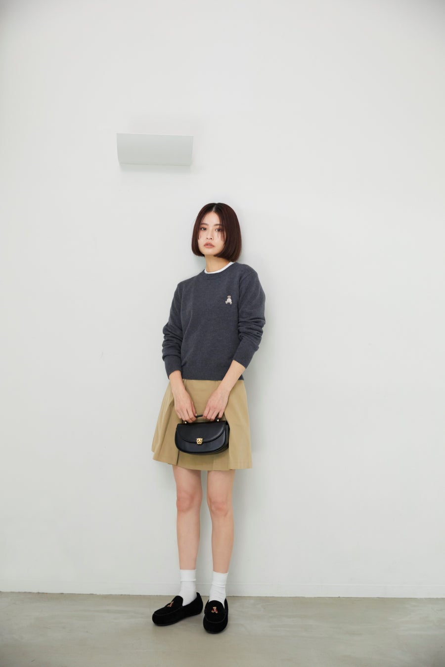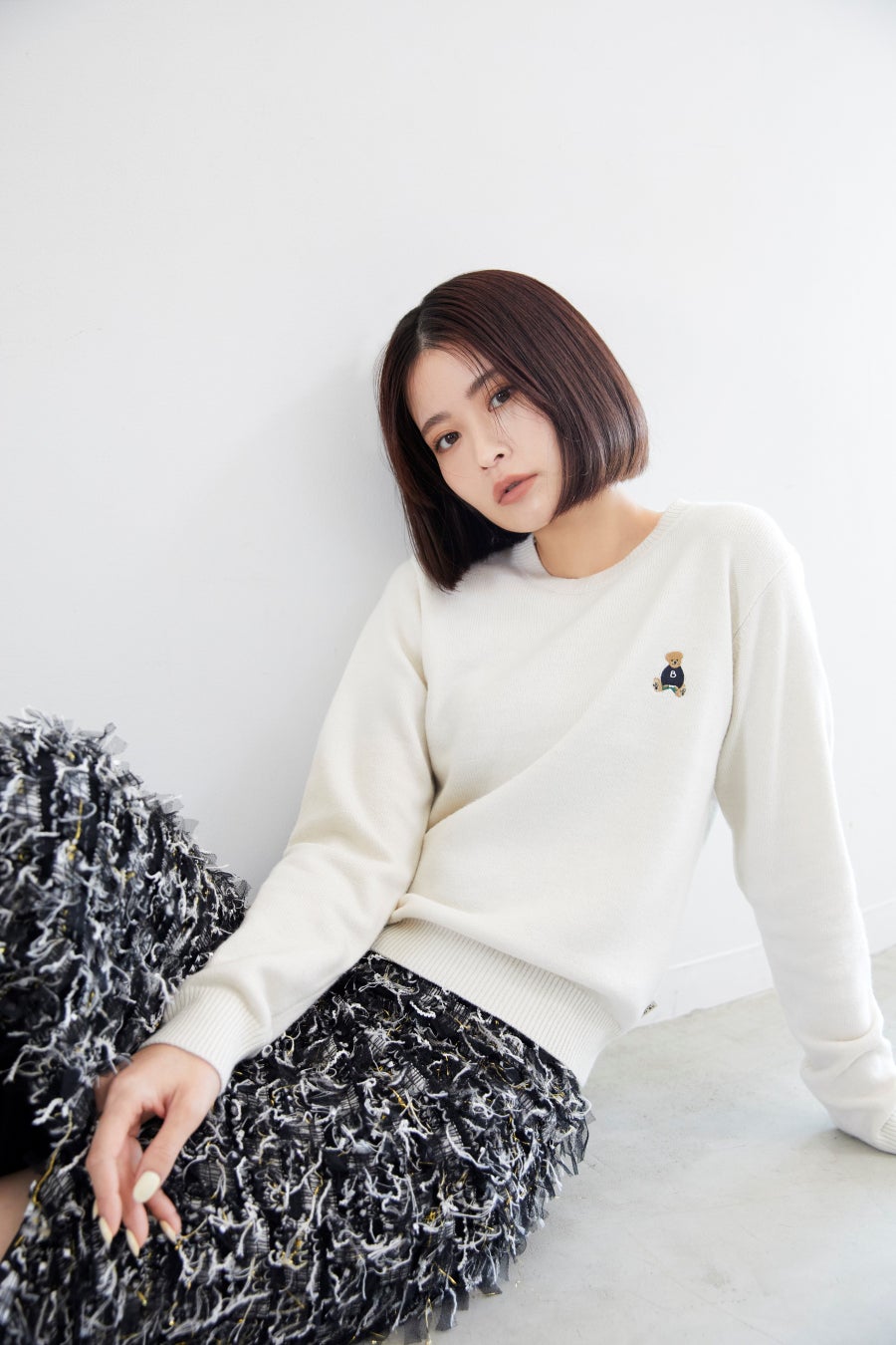 愛らしいベアの刺繍を施したニットプルオーバーは、シンプルなシルエットをベースに品のあるクルーネックに仕上げ、どんなアイテムともコーディネートしやすく、ワードローブのキーアイテムとして活躍してくれます。