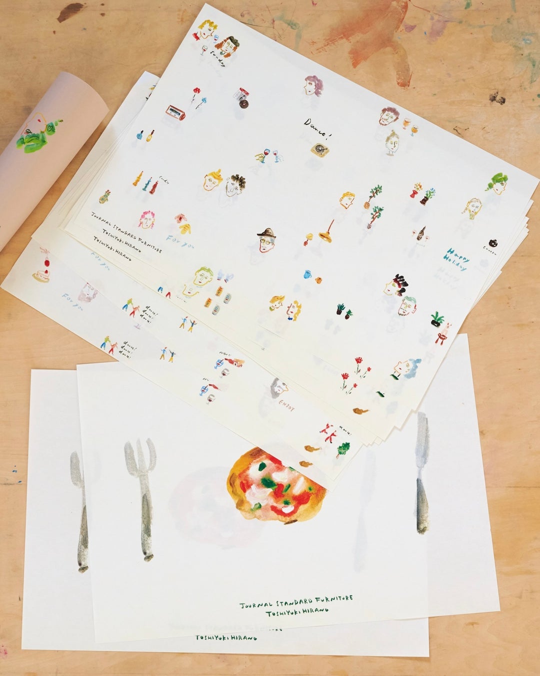 JOYFUL GIVING GIFTのキービジュアルとコラボレーションアイテムを制作したイラストレーター・ヒラノ トシユキさんのイラストが施されたギフトラッピング。商品のサイズに合わせ5サイズ展開。