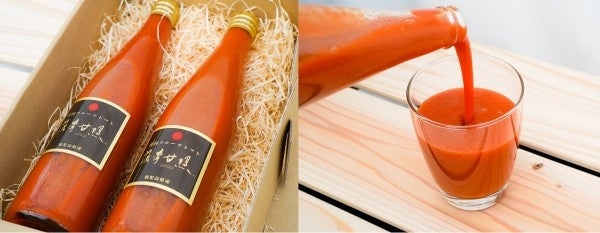 さらに、「南国フルーツトマト 薩摩甘照」を丸ごと絞った100%トマトジュースは、まるでフルーツジュースのような甘味と酸味!