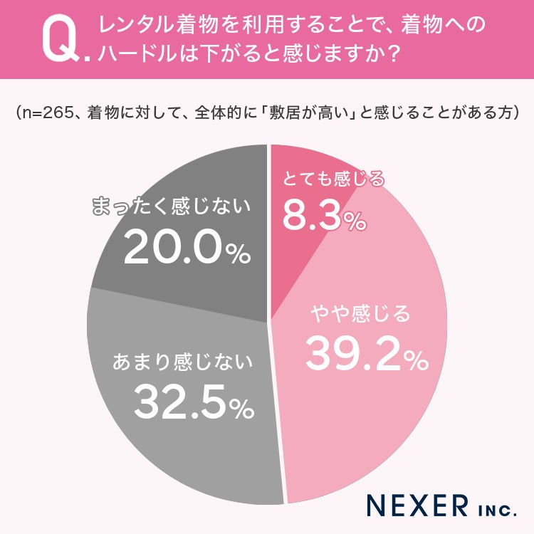 最後に、レンタル着物を利用することで、着物へのハードルが下がると感じるかを聞いてみました。