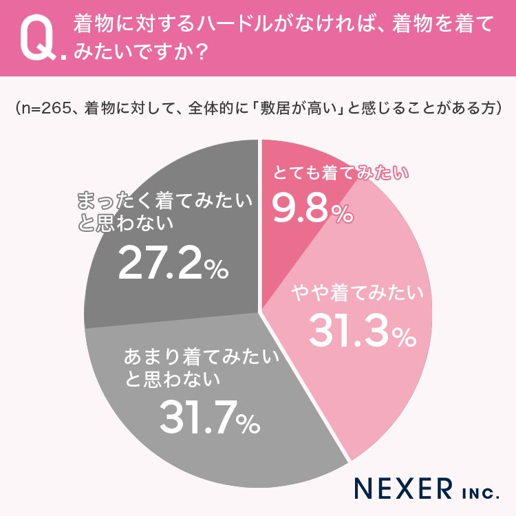 レンタルという選択肢があることで、約半数が着物を身近に感じられる可能性があることがわかります。