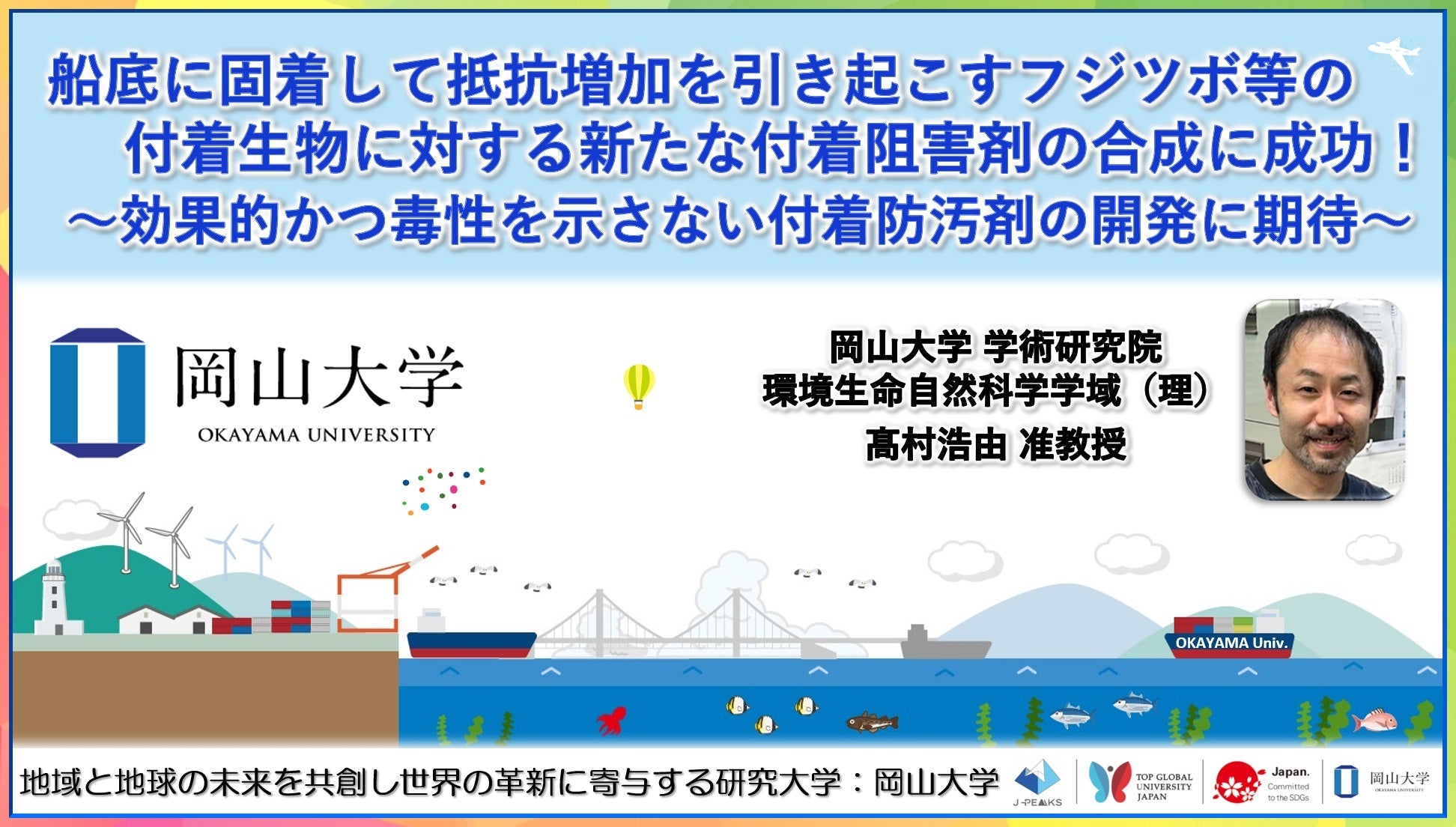【岡山大学】船底に固着して抵抗増加を引き起こすフジツボ等の付着生物に対する新たな付着阻害剤の合成に成功! ~効果的かつ毒性を示さない付着防汚剤の開発に期待~
