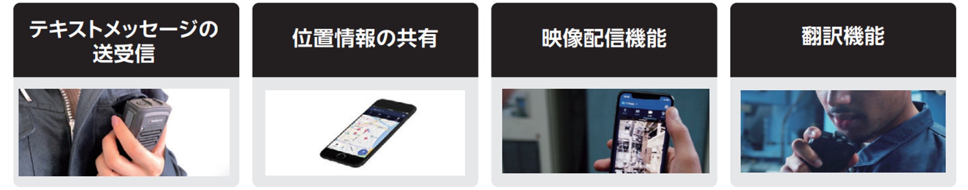 「Buddycom」はトランシーバーの役割だけでなく、以下のような便利な追加機能をご利用いただけます。
