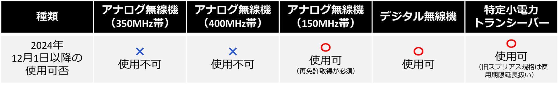 ■2024年12月1日から電波法が改正され、一部のアナログ電波のトランシーバーが使用不可に