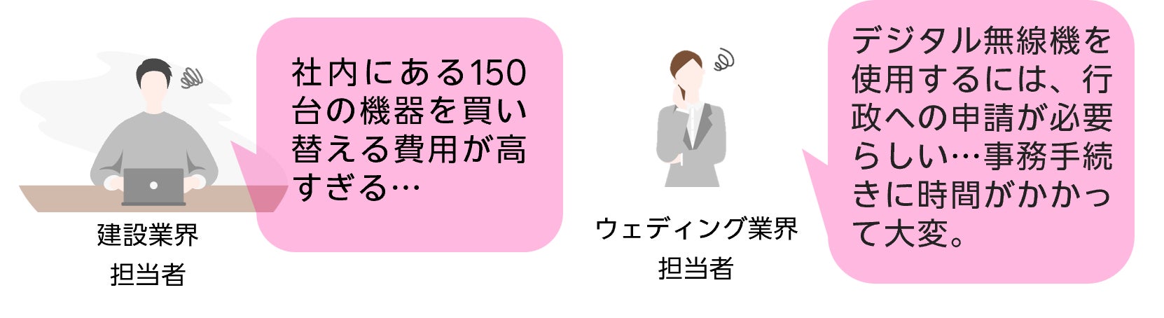 無線機の切り替えが迫っている中、多くの企業から費用面や事務処理など、切り替えによる負担の声が挙げられております。