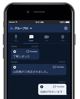 音声で話した内容が自動的に文字起こしされ、テキストメッセージでも送信されます。そのため、共有した情報を文章で振り返ることが可能になり、伝達漏れや間違いを防止できます。