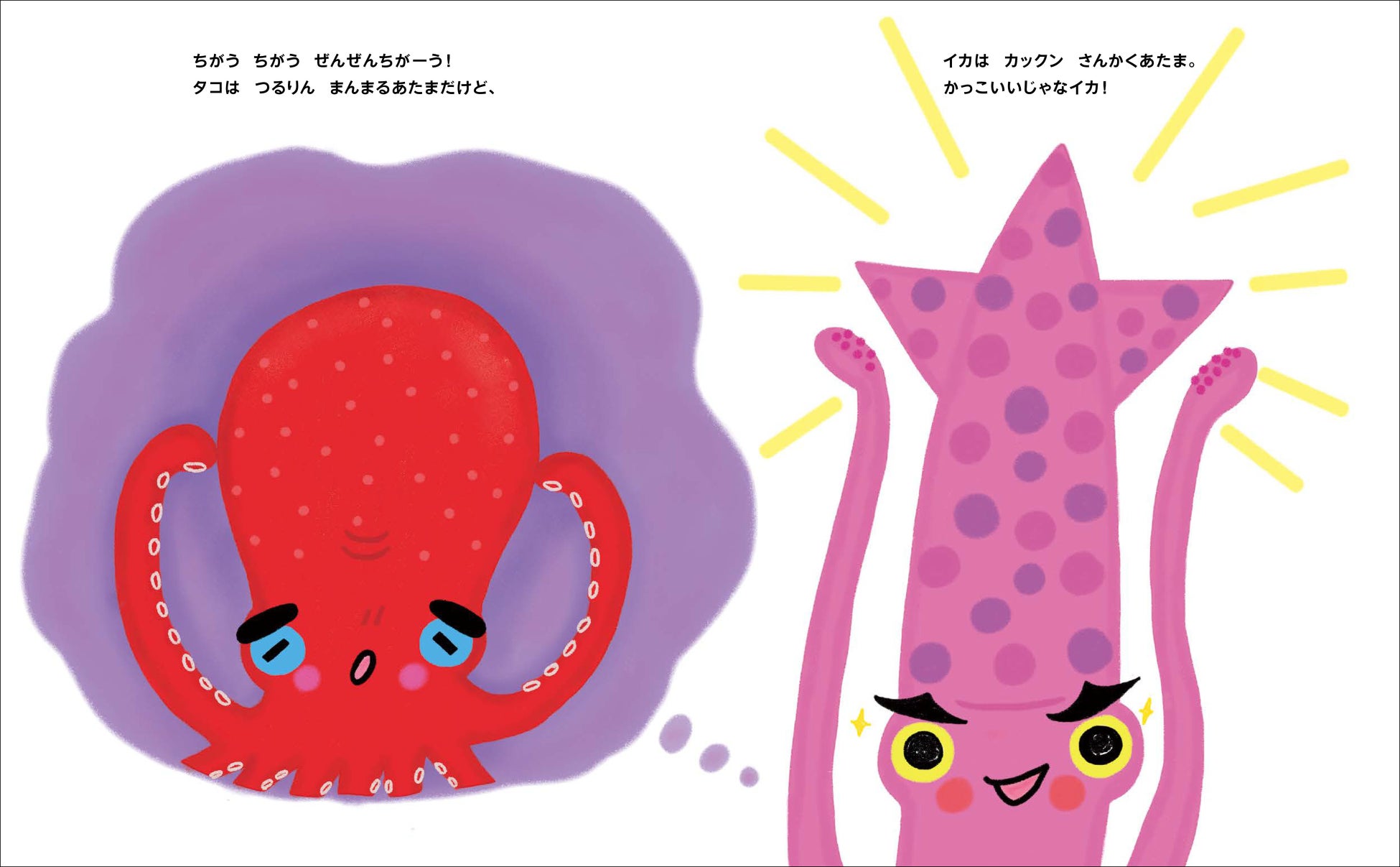 イカとタコ、ぼくたち「にてる?」「にていない?」。⾃分とおともだちの良いところを、たくさん⾒つけたくなる絵本『イカはイカってる』のプレゼントキャンペーンを開催いたします。