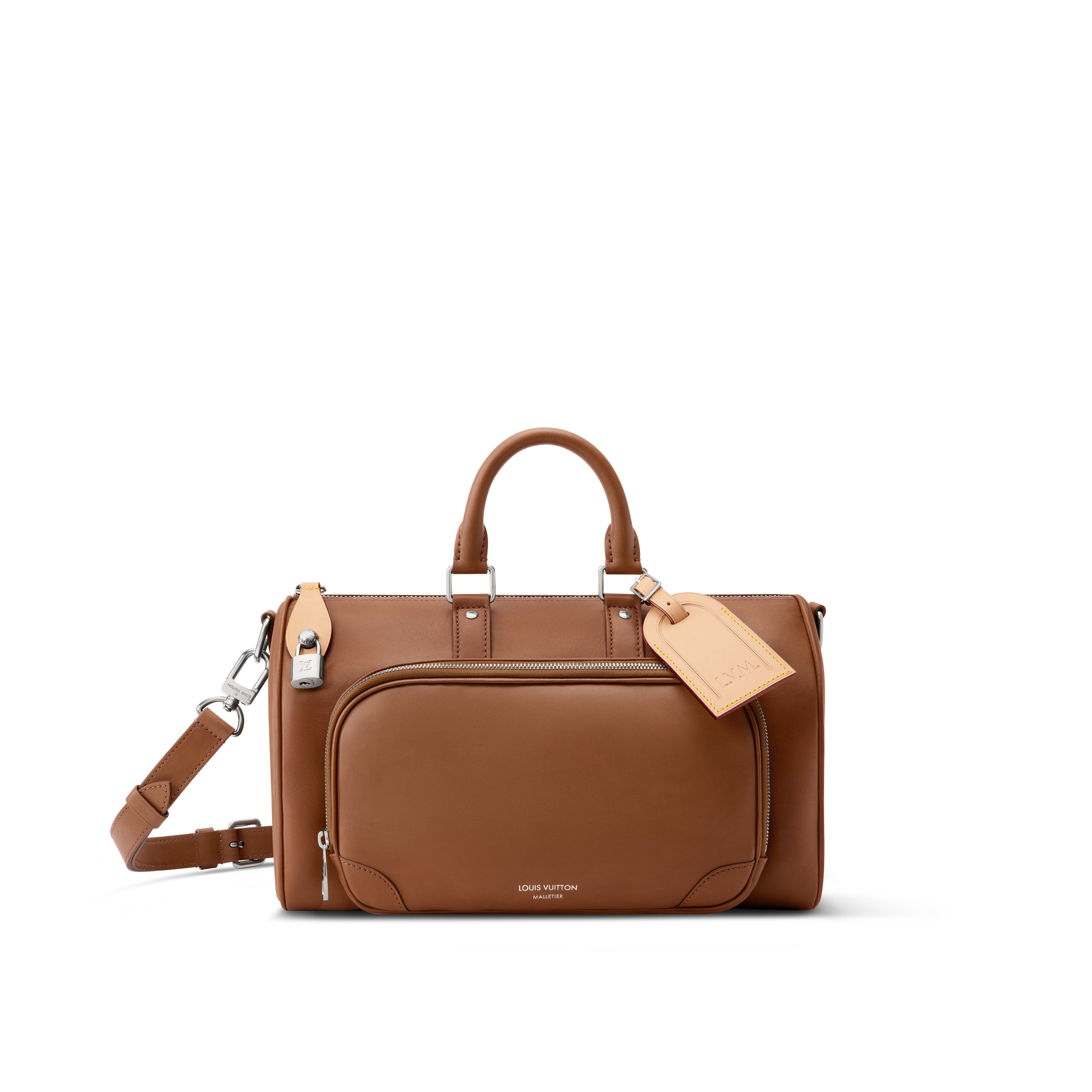 軽くドラム加工された非常に柔らかいカーフレザーで施された「キーポル·カーゴ バンドリエール 35」。実用性に優れたファスナー式フロントポケットが特徴です。ネームタグとファスナー引き手はメゾンの定番のヌメ革で仕上げました。ジャカードのライニングが洗練された印象をプラス。手に馴染むトップハンドルと取外しや調節が可能なストラップにより、持ち運びも自在です。