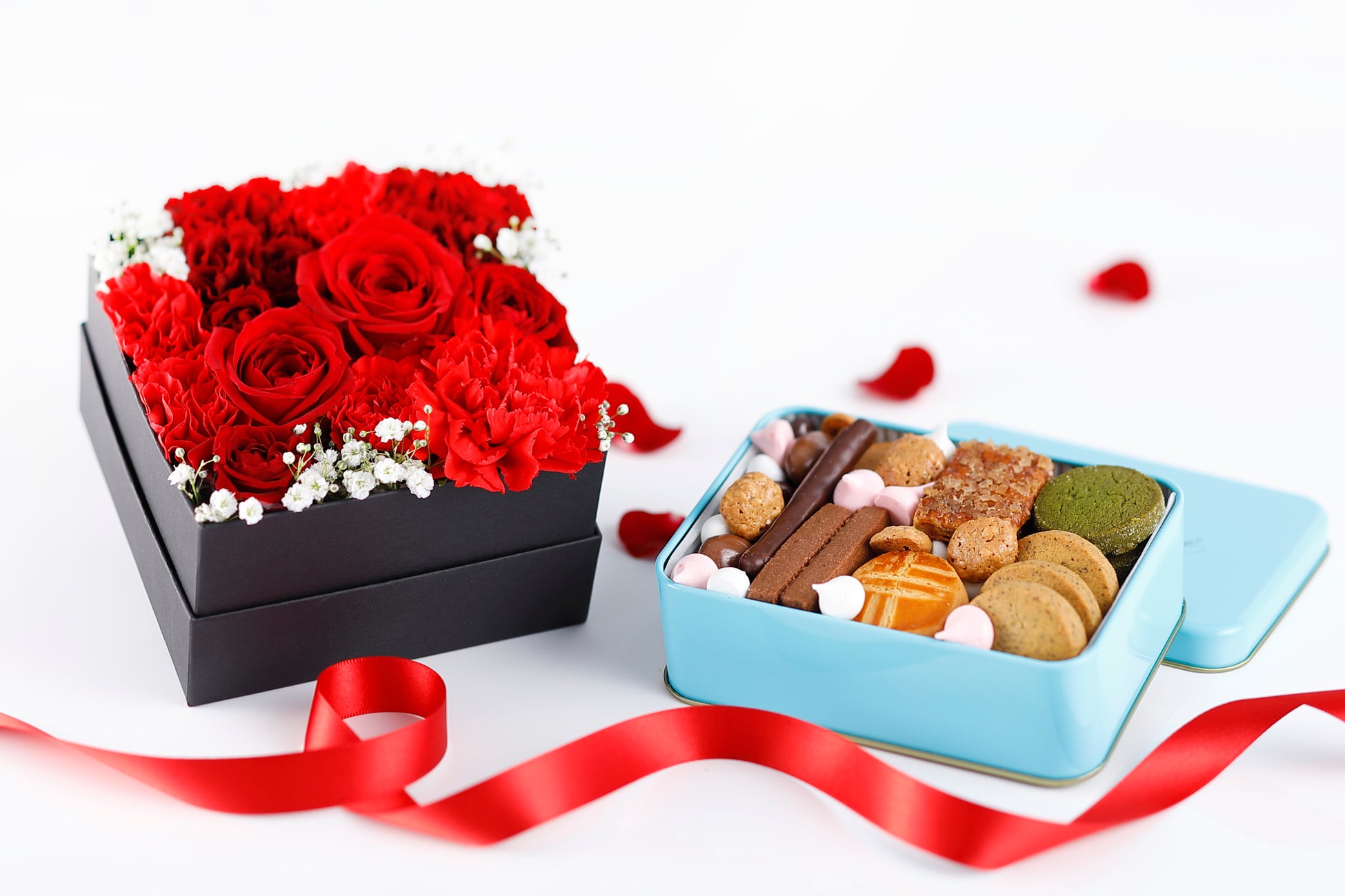 ホテルニューオータニのロゴが入った鮮やかなブルーのクッキー缶とフラワーBOXのセット。厚めのサクサクなクッキーと濃厚なチョコレートが詰まった『SATSUKIチョコレート&クッキー』は、計11種類の豊富なフレーバーをお愉しみいただけます。さらにクッキーをお愉しみいただいた後も、青缶をさまざまな用途でご利用いただけるので、環境に配慮したギフトとしてもぴったりです。
