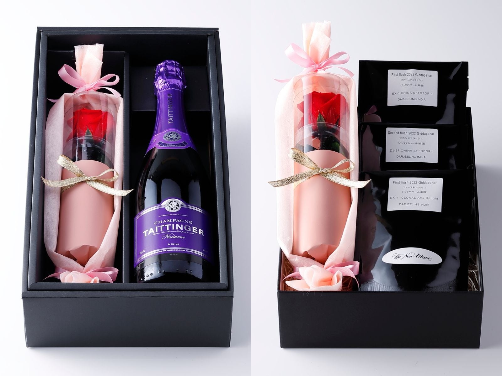 オンラインショップよりシャンパーニュと紅茶3種をプリザーブドフラワーとセットにした配送限定ギフトも母の日限定で新たに2種類販売いたします。