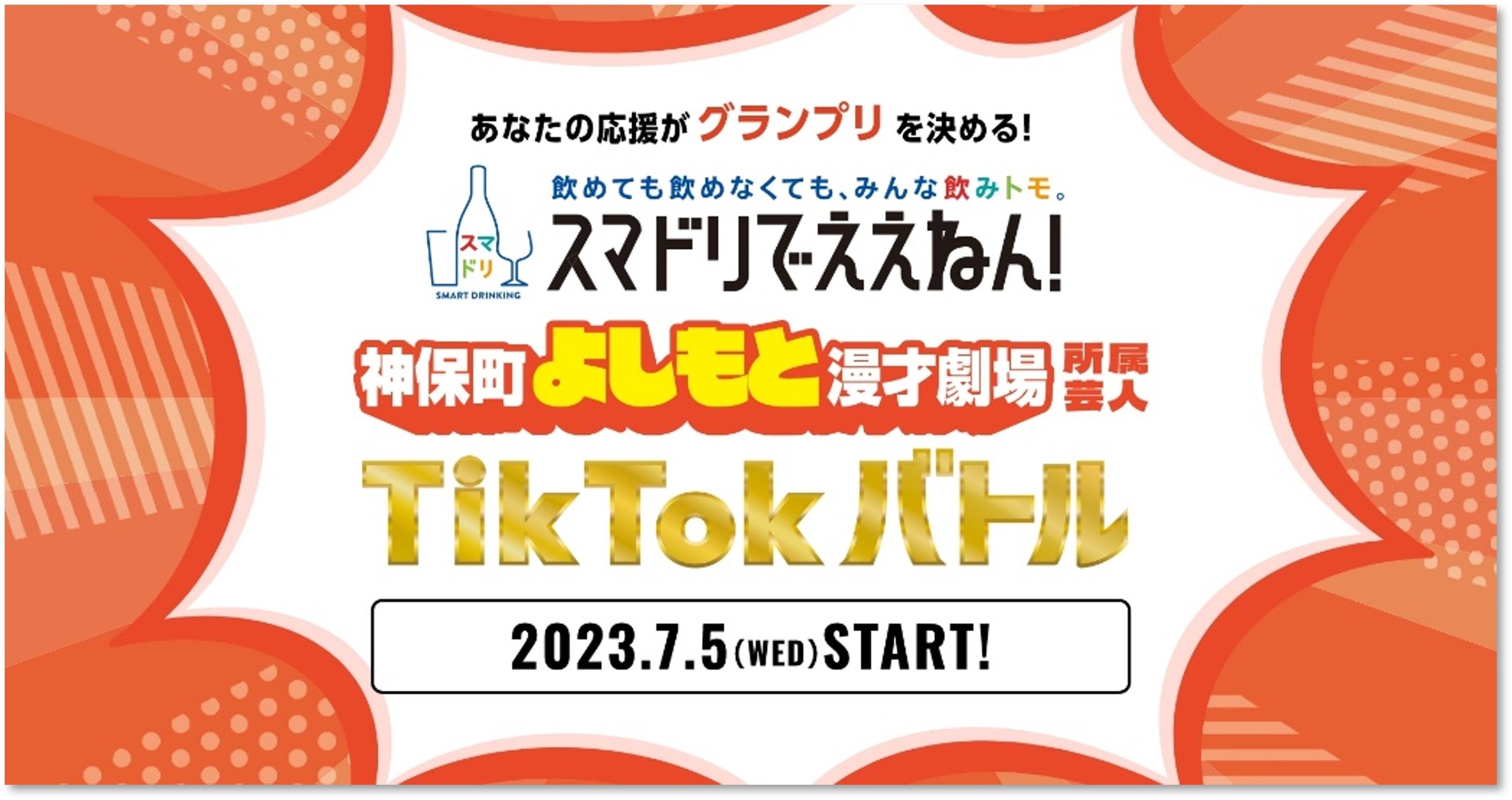 飲み方の多様性を推進するアサヒビールの「スマートドリンキング」は更なる認知拡大に向け、よしもと芸人とコラボレーションした『We are 飲みトモ スマドリでええねん! PROJECT』を実施しております。その取り組みの一環として、ショートムービープラットフォーム「TikTok(ティックトック)」にて、7月5日(水)から18日(火)の期間、吉本興業が運営する神保町よしもと漫才劇場所属の芸人9組によるパフォーマンス人気投票バトル「スマドリでええねん!神保町よしもと漫才劇場所属芸人TikTokバトル」を開催いたします。また、本企画宣伝担当の芸人4組のパフォーマンス動画を先行して公開しています。