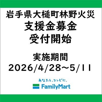 岩手県大槌町 林野火災被害に伴う 店頭支援金募金受付のお知らせ
