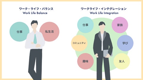ワーク・ライフ・バランスから発展した「ワークライフ・インテグレーション」とは、仕事と生活を対立的に捉えるのではなく、双方を統合し、仕事と生活、学び、コミュニティの間に境界線をなくすことで相乗効果を生み、豊かな人生を目指す考え方です。