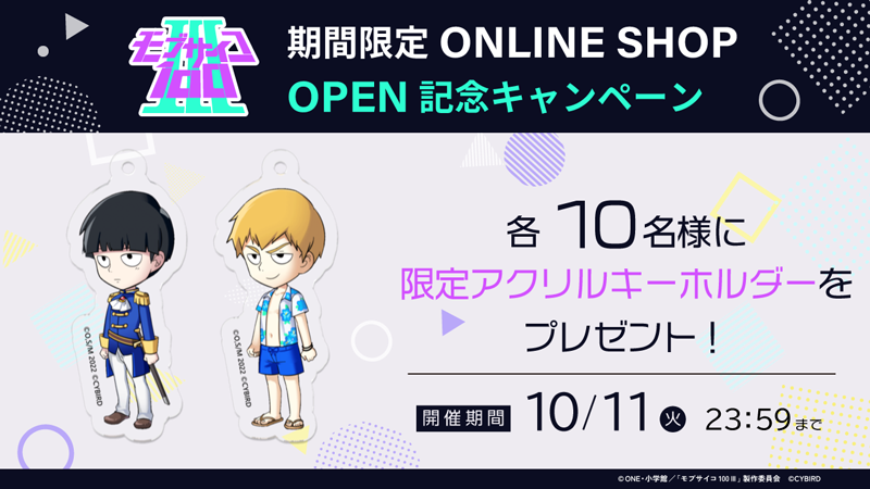 TVアニメ『モブサイコ100 Ⅲ』放送記念期間限定ONLINE SHOP販売開始!~オリジナルデザインのアクリルキーホルダーが抽選で当たるキャンペーンも開催!~