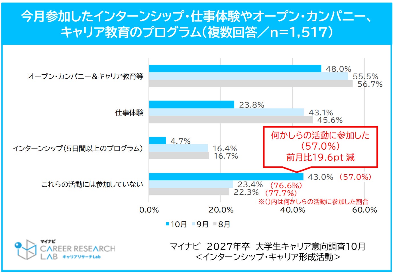 「マイナビ 2027年卒 大学生キャリア意向調査10月<インターンシップ・キャリア形成活動>」
