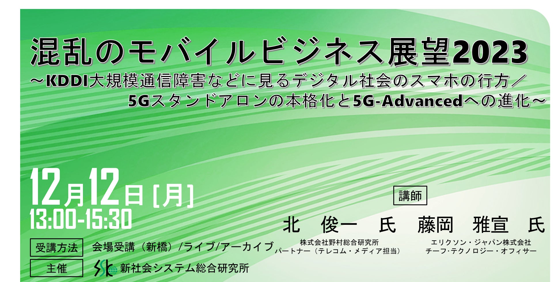 「混乱のモバイルビジネス最新展望2023」と題して(株)野村総合研究所 北 俊一氏/エリクソン・ジャパン(株) 藤岡 雅宣氏のセミナーを2022年12月12日(月)に開催!!